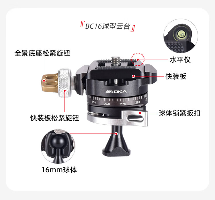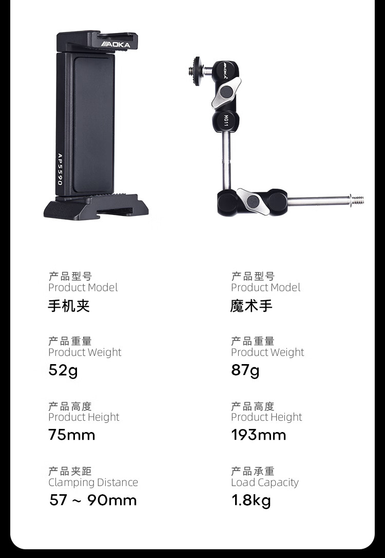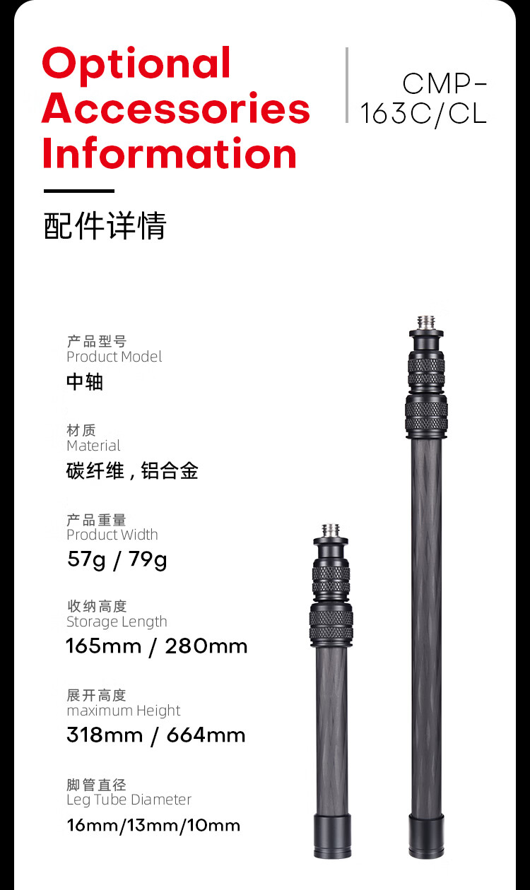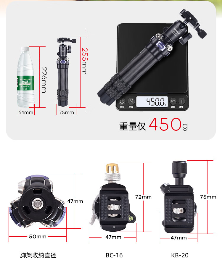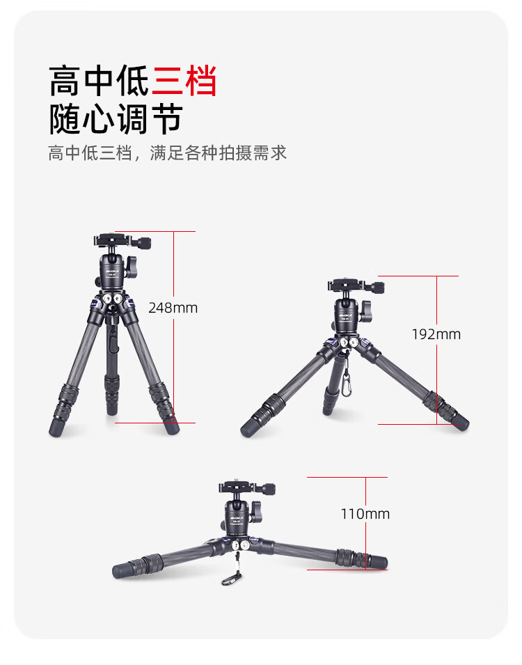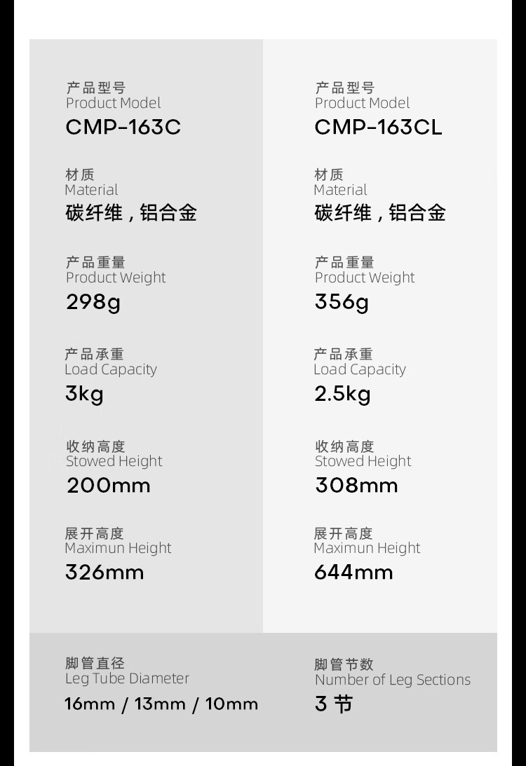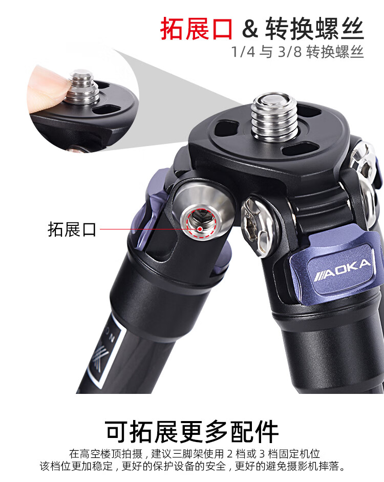 AOKA奥咔CMP163系列轻巧便携碳纤维三脚架手持单反微单摄影三角架手机旅行自拍直播拍摄vlog短视频 CMP163CL 脚架 + KB-20 + 中轴 + 手机夹