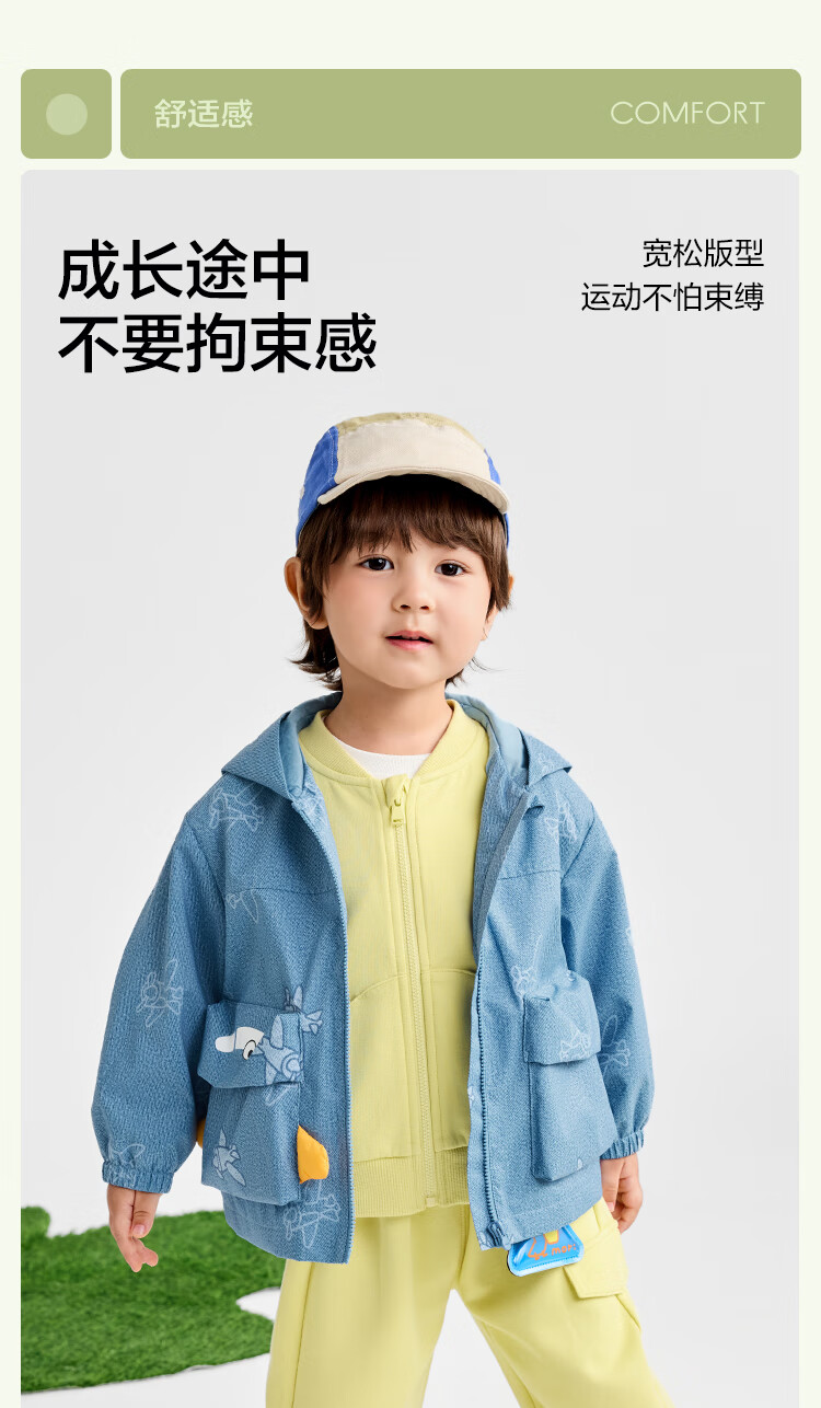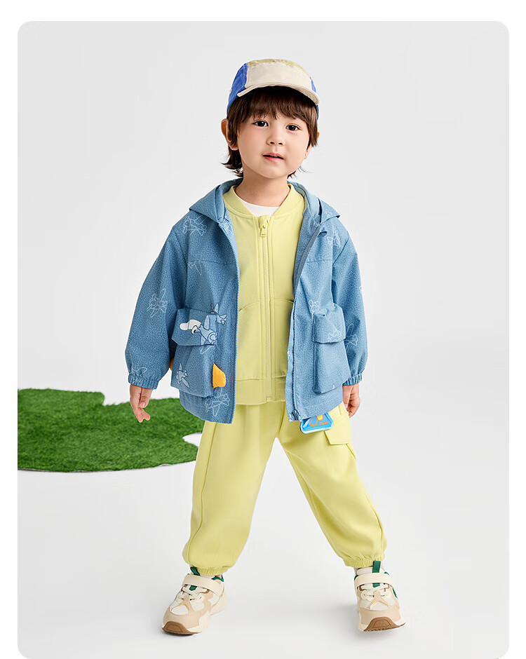迷你巴拉巴拉男女童长袖套装潮流拼色上衣长裤两件套春季新款 海盐千层 100 【91-100cm 12-16kg】