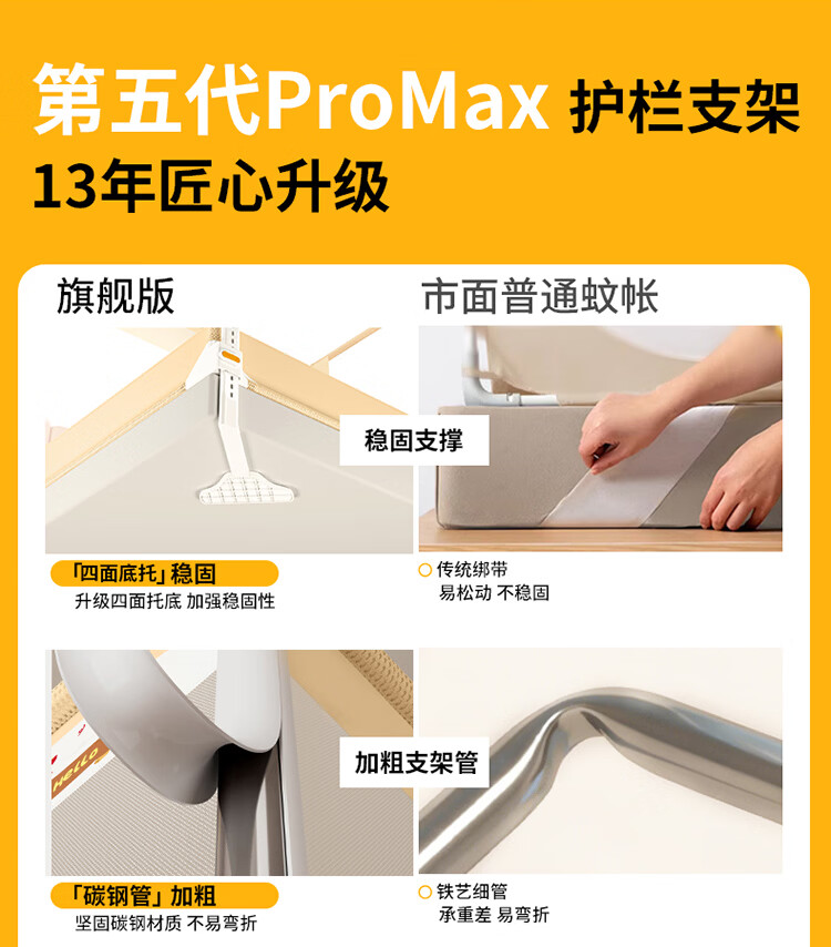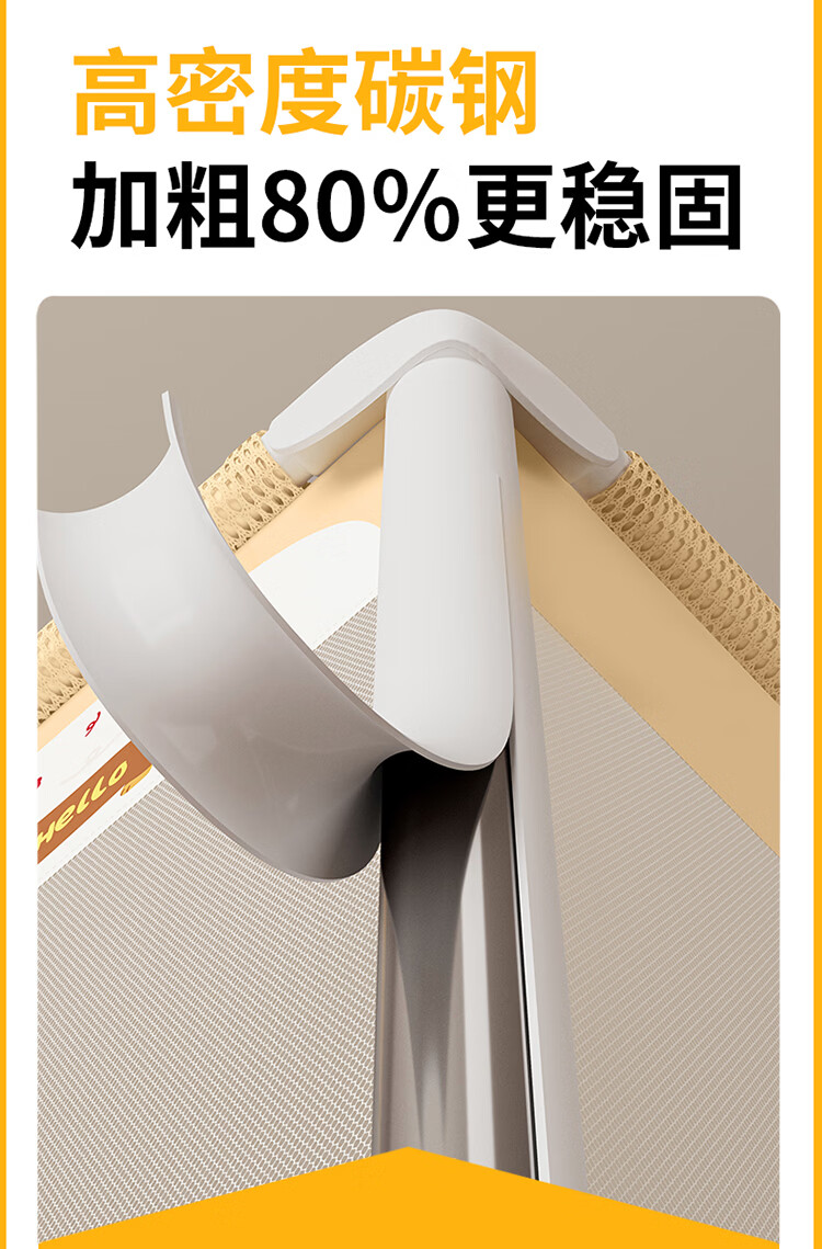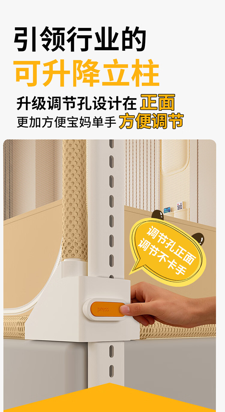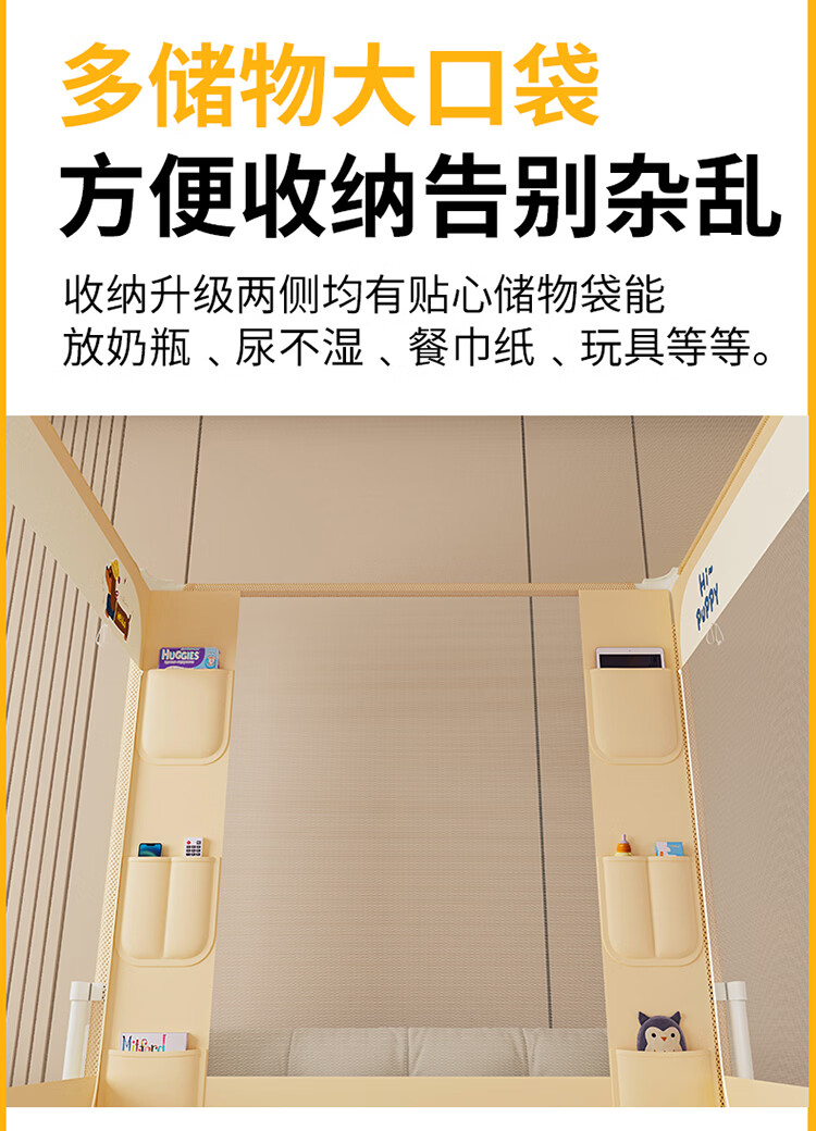 无印良品婴儿防摔蚊帐1.5米x2米家用一体式免安装全包围防掉床围栏蚊帐架 奶灰小熊【A类品质 泰山级围栏支架 稳固防摔】 150cm*200cm*170cm 擎天柱大脚板支架【真护栏级防摔】