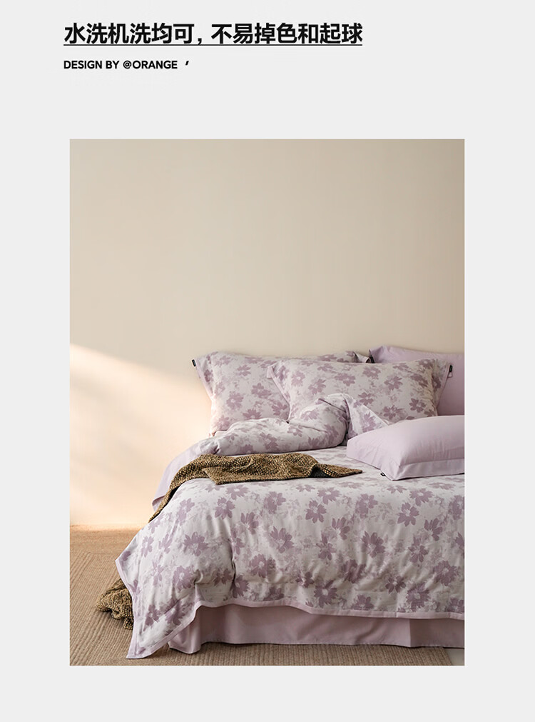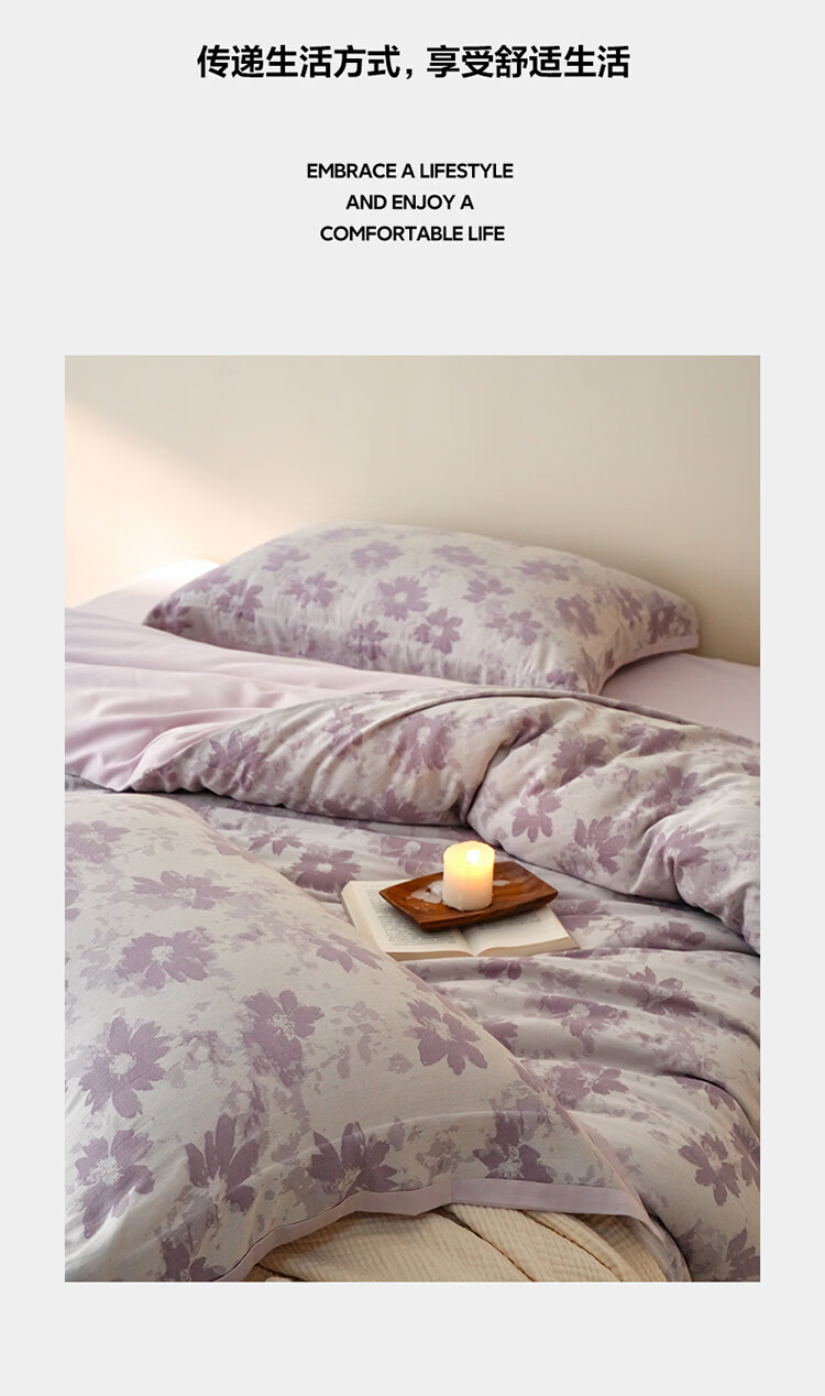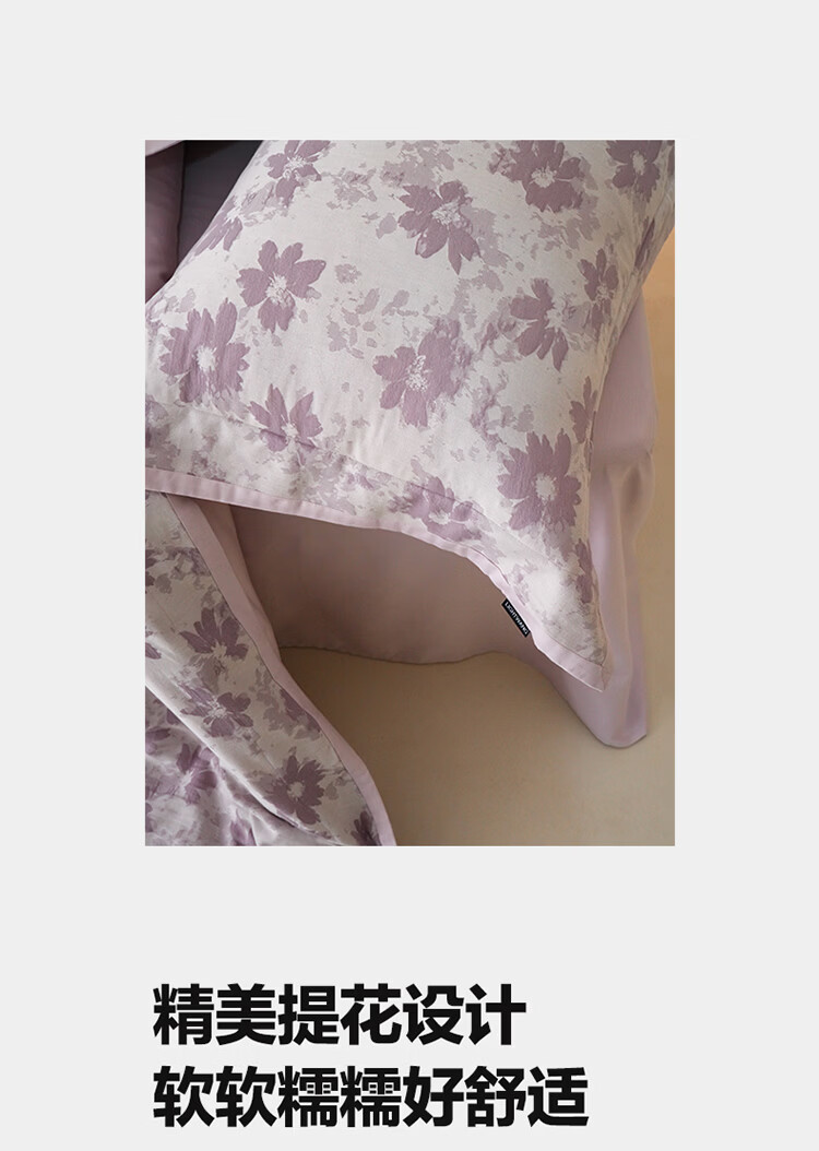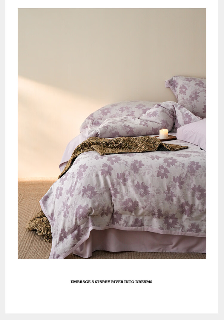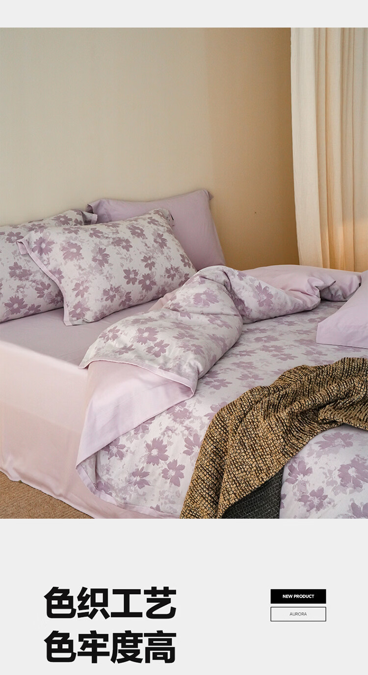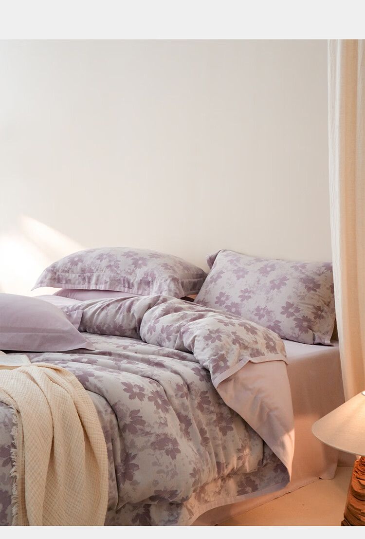 ROLAND LIVE新疆长绒棉色织提花四件套法式浪漫纯棉裸睡被套床单床上用品 YYG 长绒棉四件套-紫梦花织-浅紫 1.8米床 床单款 【被套200*230cm】