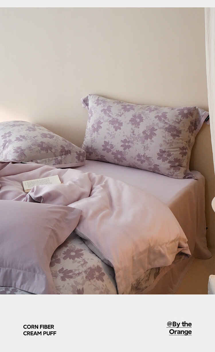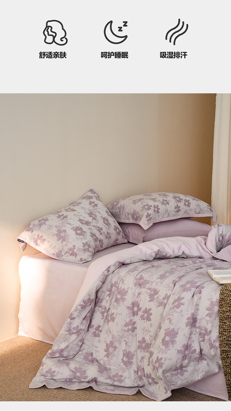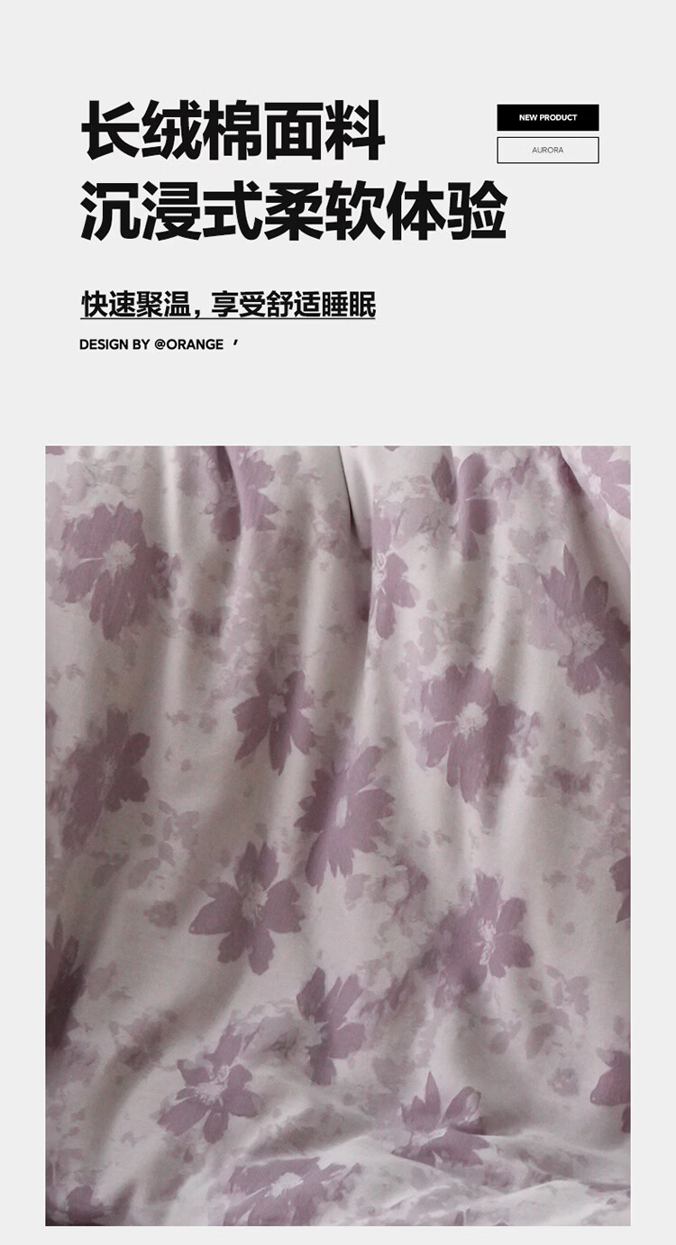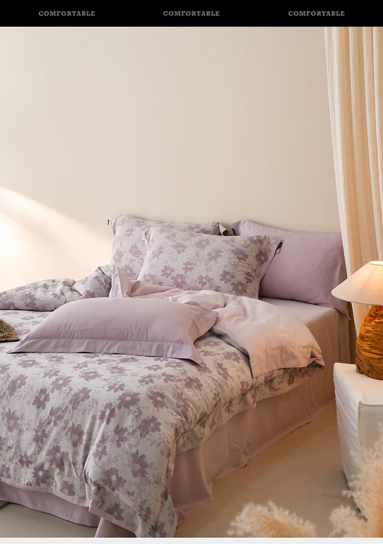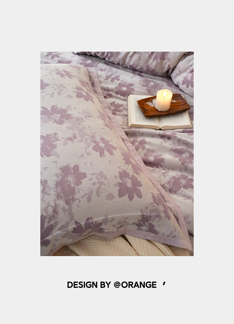 ROLAND LIVE新疆长绒棉色织提花四件套法式浪漫纯棉裸睡被套床单床上用品 YYG 长绒棉四件套-紫梦花织-浅紫 1.8米床 床单款 【被套200*230cm】