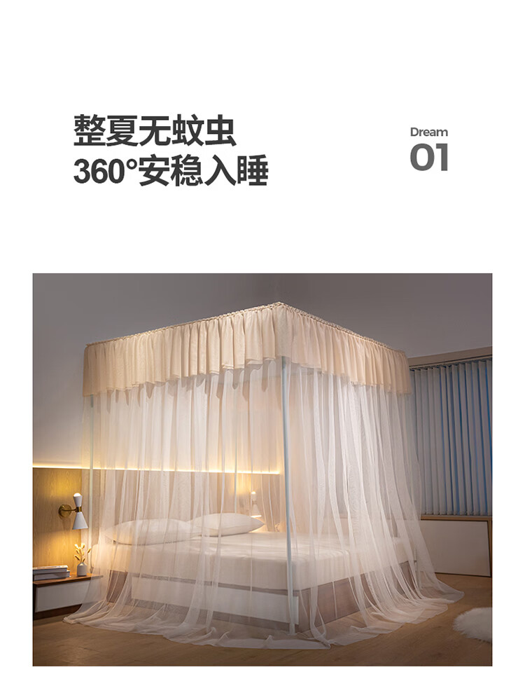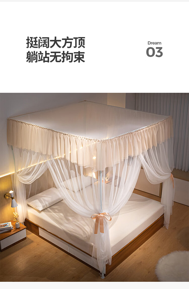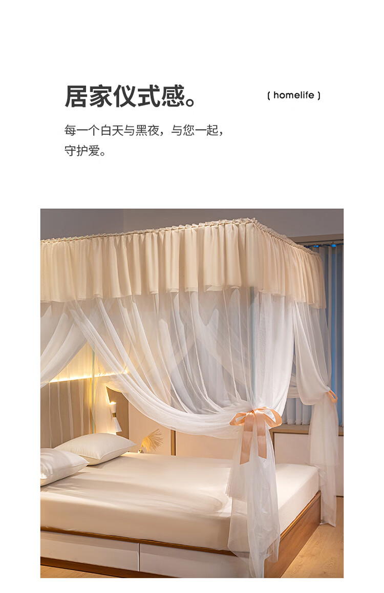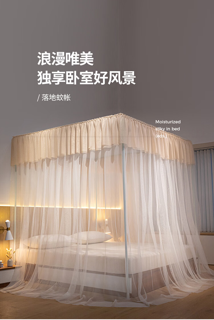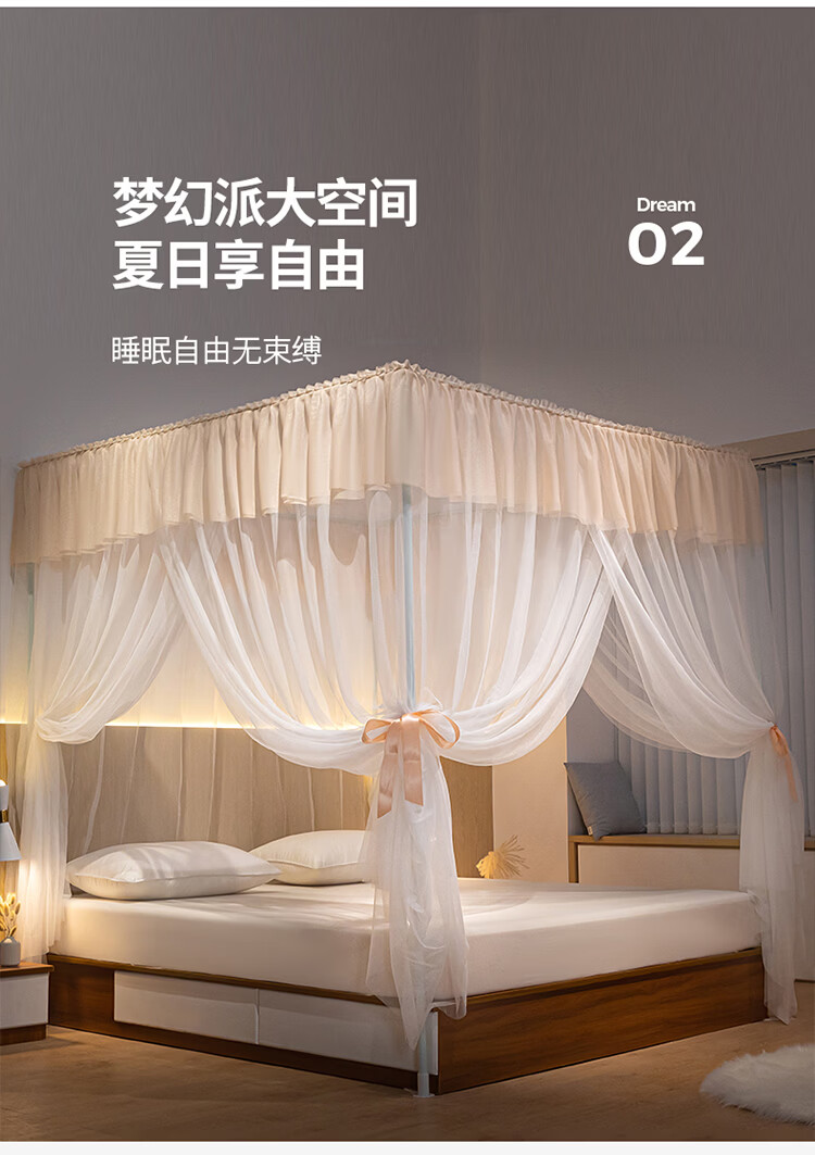 无印良品方顶宫廷落地蚊帐1.8x2米家用2026新款卧室大床公主风双层床幔纱 LX90香槟【落地帐纱 全包围防蚊】 200cm*220cm*210cm 【加粗烤漆支架】