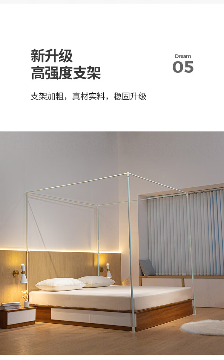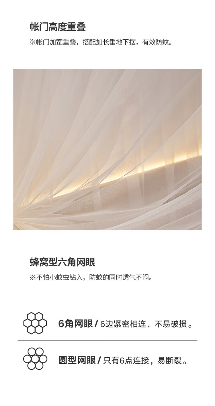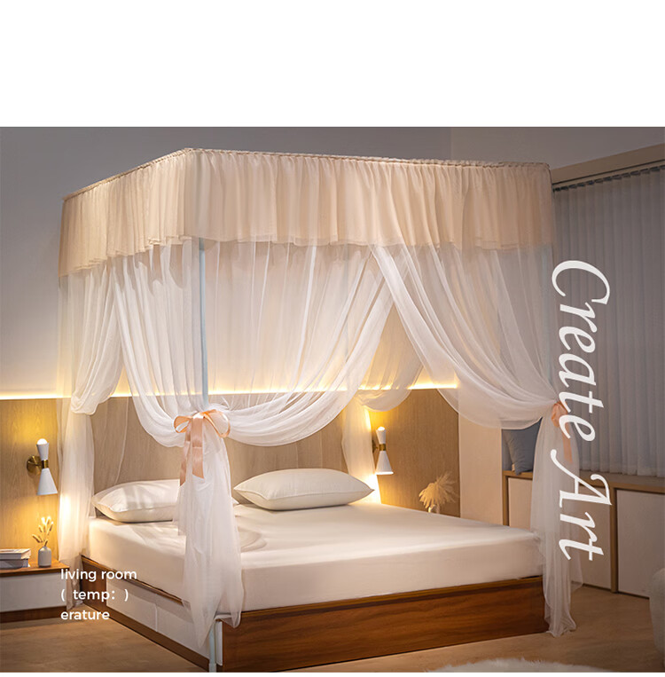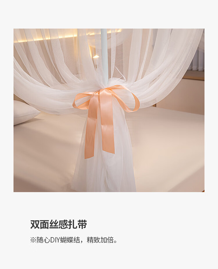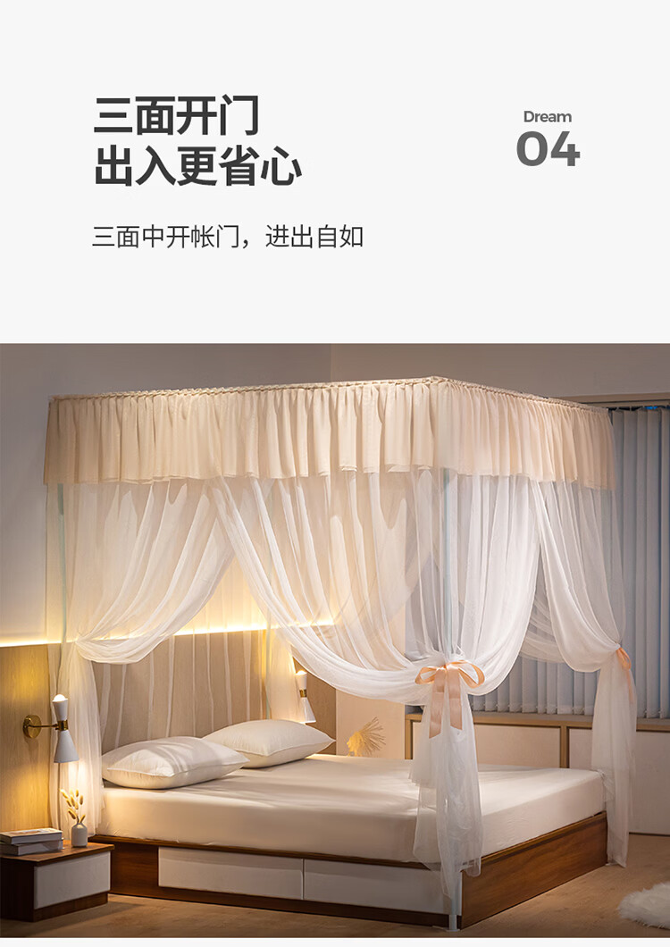 无印良品方顶宫廷落地蚊帐1.8x2米家用2026新款卧室大床公主风双层床幔纱 LX90香槟【落地帐纱 全包围防蚊】 200cm*220cm*210cm 【加粗烤漆支架】