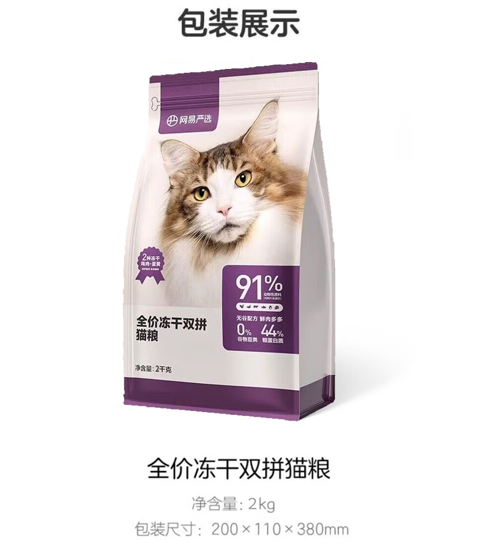 网易严选全价冻干双拼猫粮1.8KG主粮成幼猫高鲜肉无谷猫粮