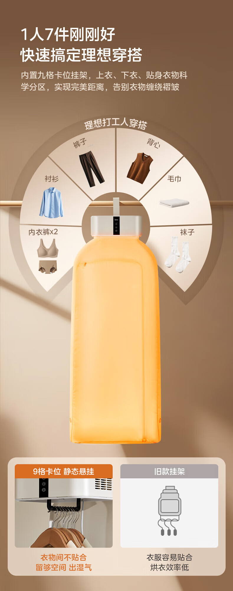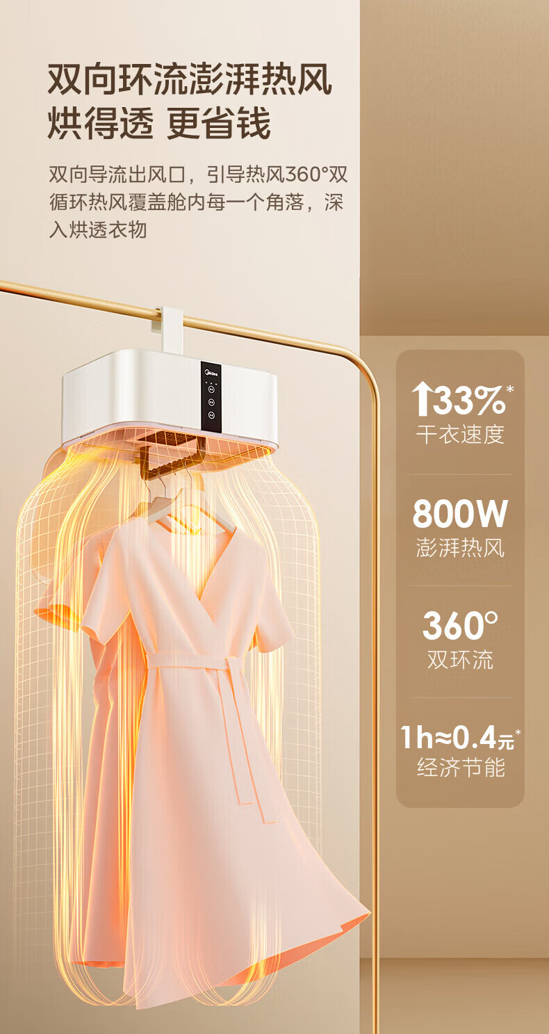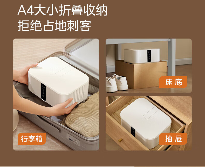美的(Midea)干衣机家用便携小型烘衣机器脱水机衣物消毒机衣柜折叠收纳旅行除菌除螨烘干机 165L 【巴氏杀菌 循环暖风】