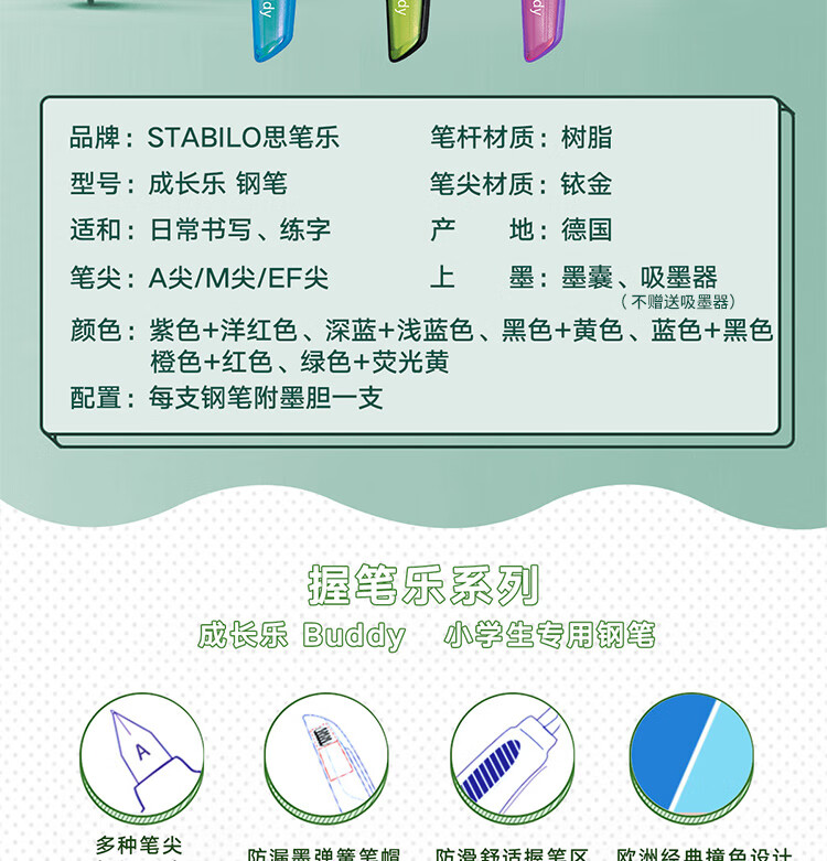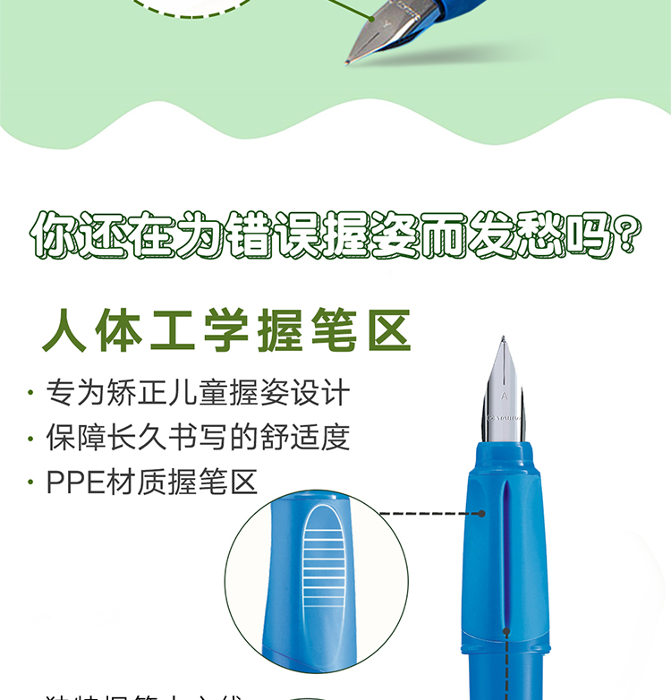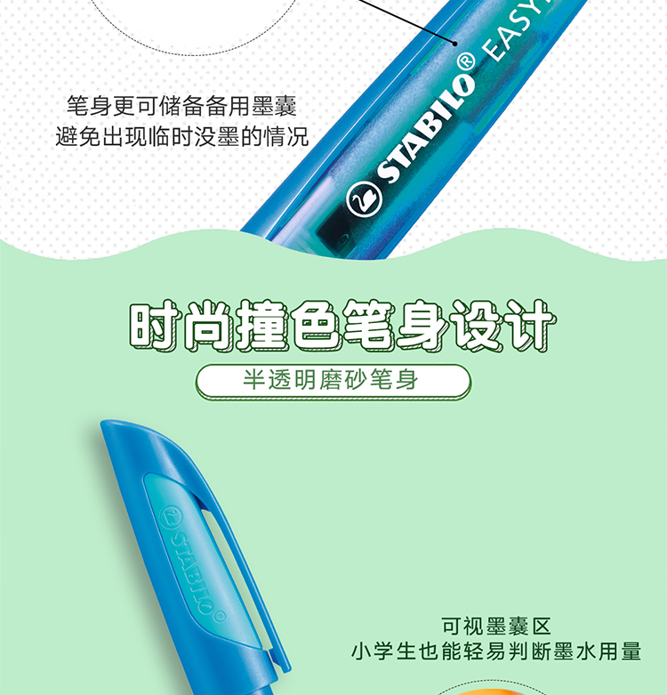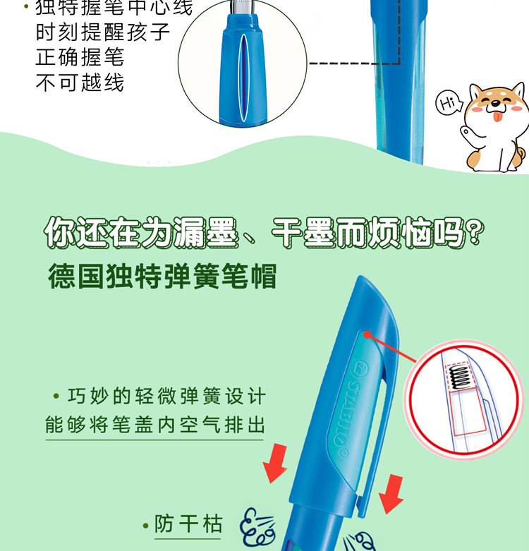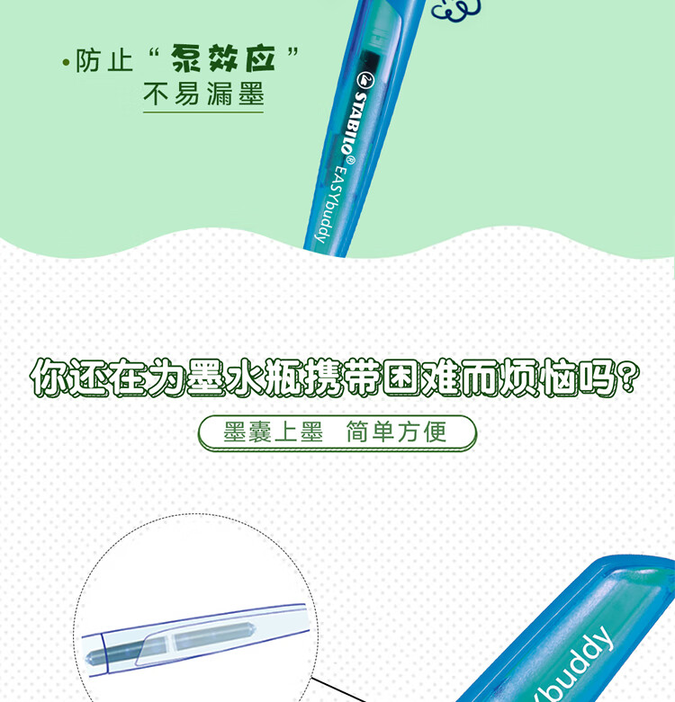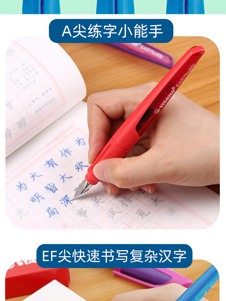 思笔乐(STABILO)成长乐钢笔 德国进口三年级小学生练字书法正姿 墨囊吸墨两用 深蓝EF尖