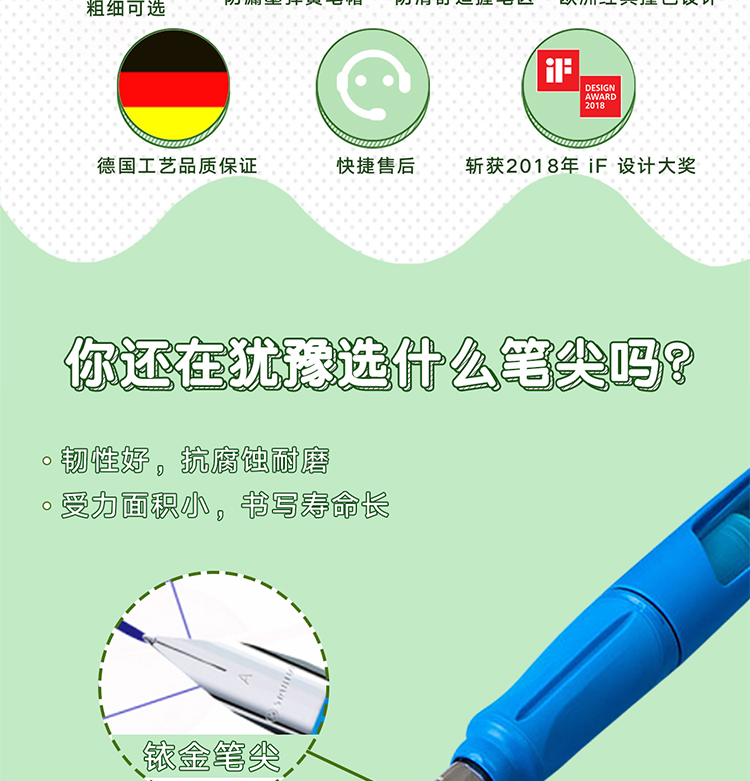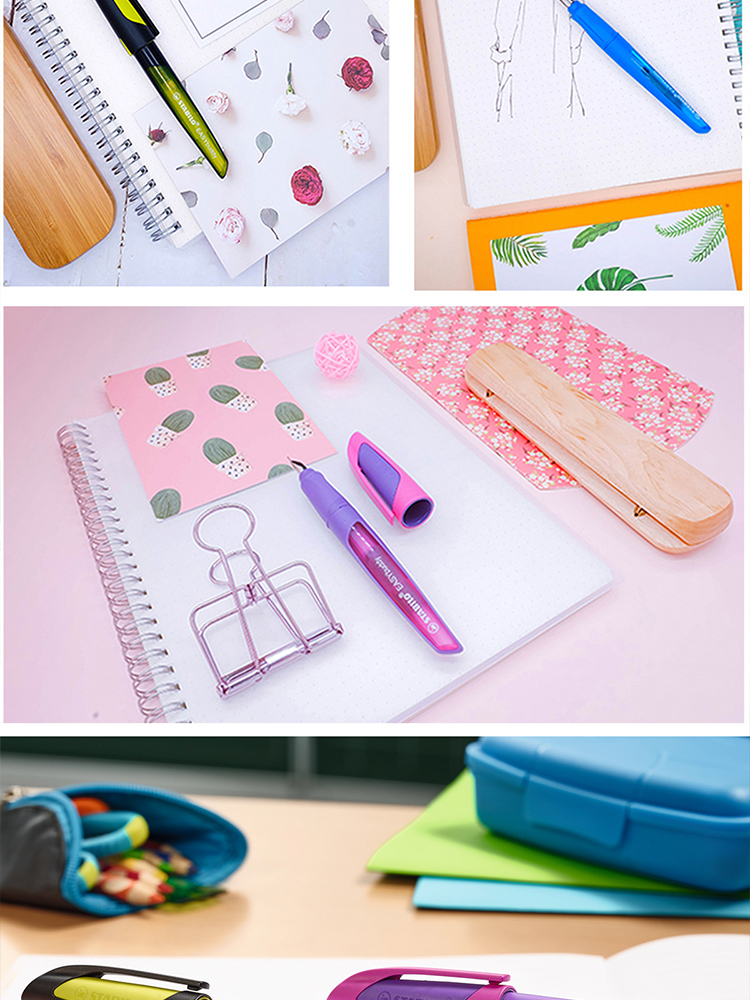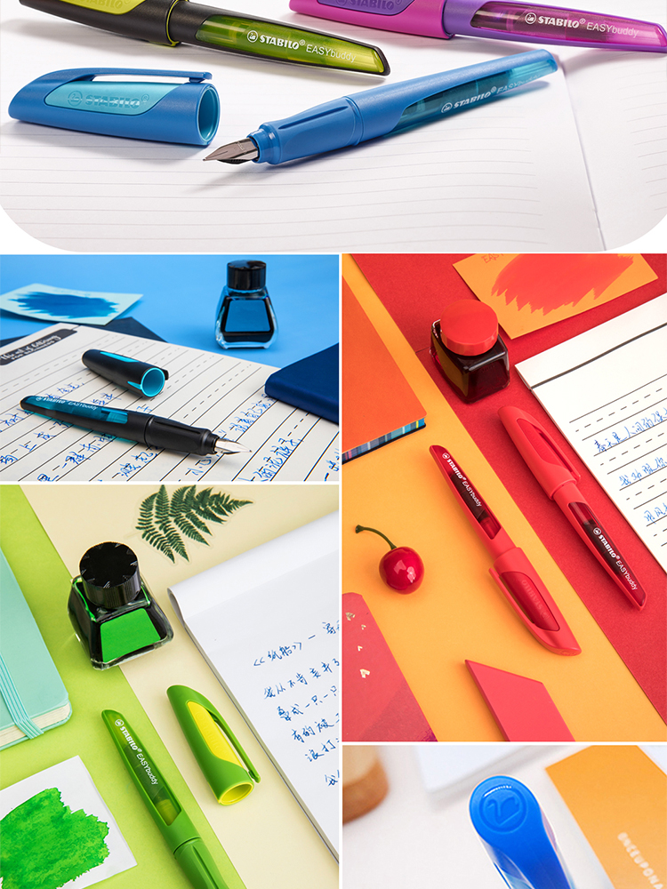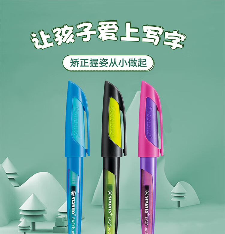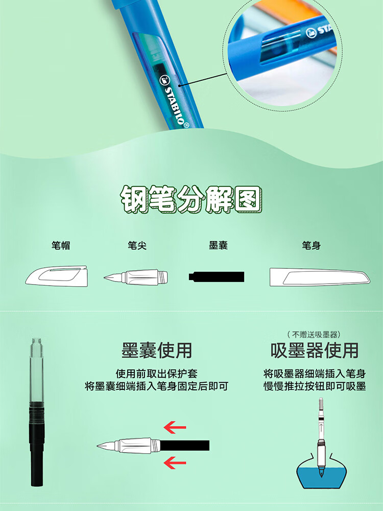 思笔乐(STABILO)成长乐钢笔 德国进口三年级小学生练字书法正姿 墨囊吸墨两用 深蓝EF尖