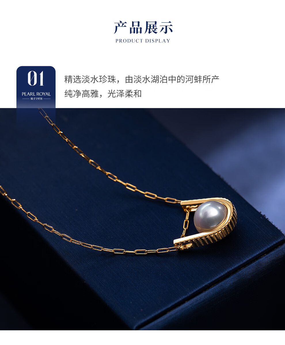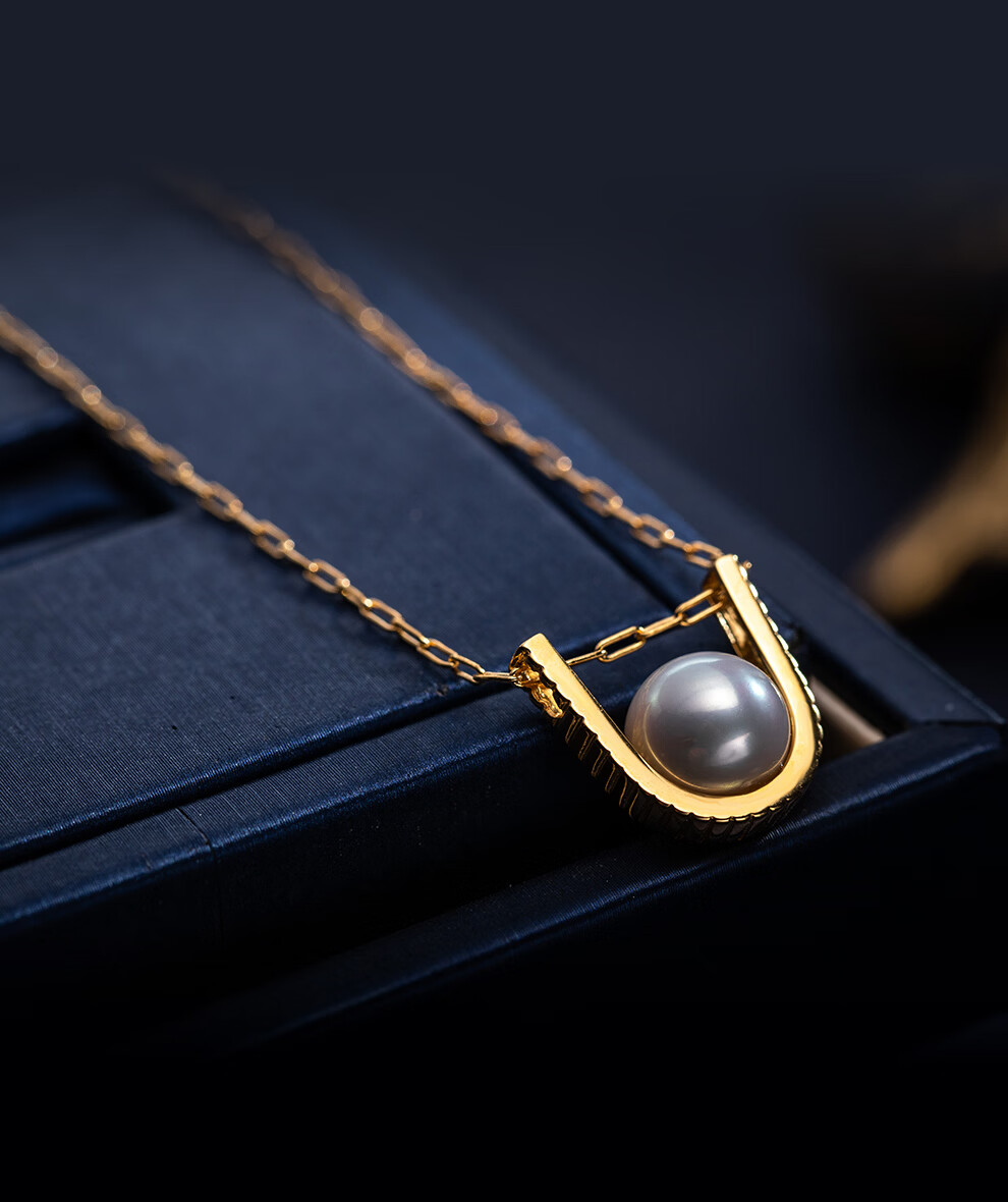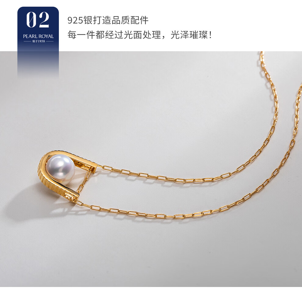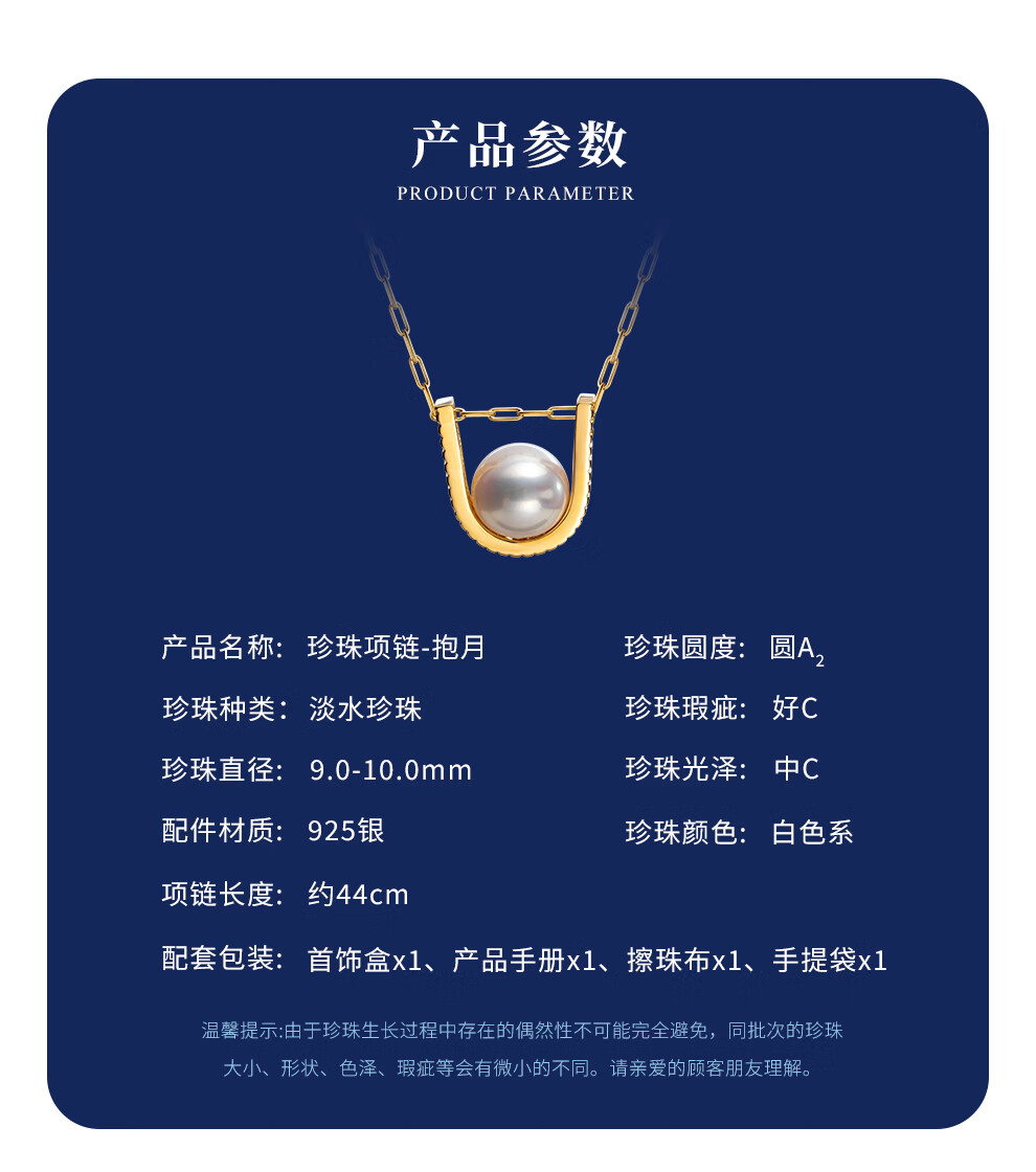 南珠宫抱月淡水珍珠项链925银U型日常百搭颈饰节日礼物送老婆 金色款 9.0-10.0mm