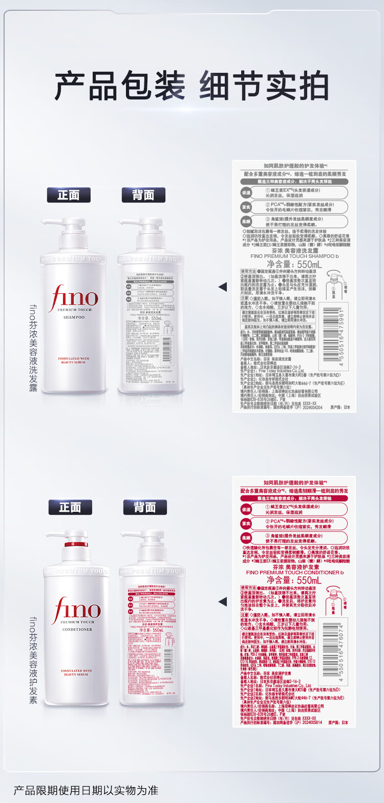 FINO芬浓美容液洗护套装洗发露550ml+护发素550ml柔顺强韧热销商品