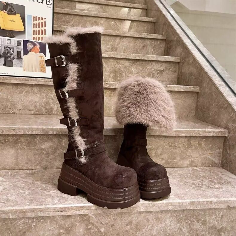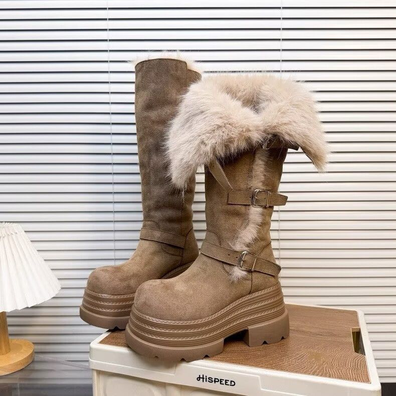 2025厚底网红增高爆款新款毛绒靴女高筒冬季加绒防滑保暖雪地