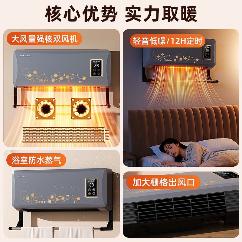 荣事达取暖器壁挂暖风机家用节能防水浴室大功率速热电暖器免打孔