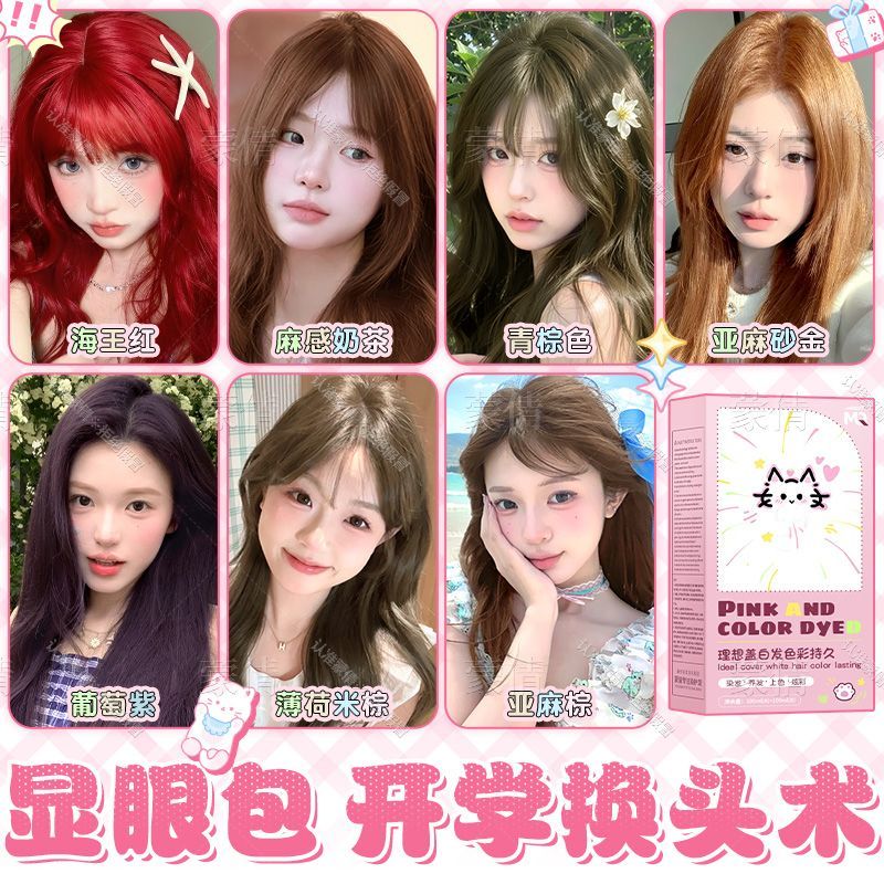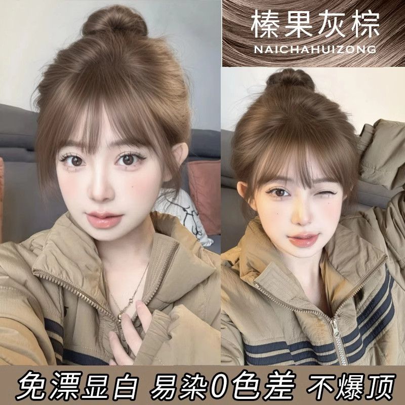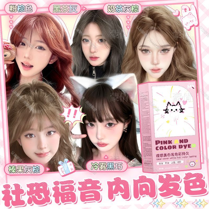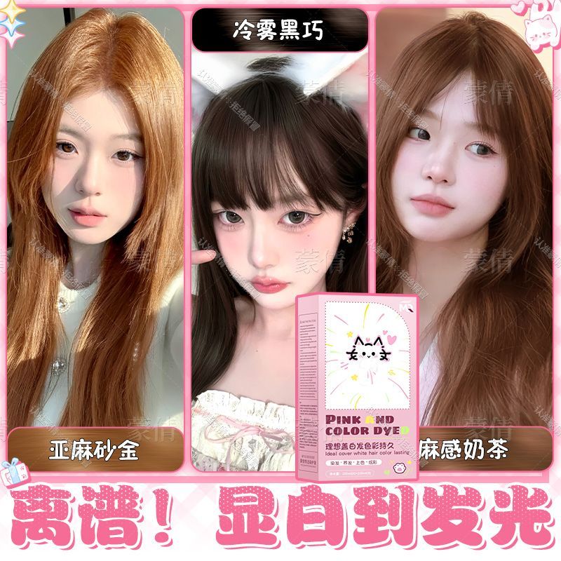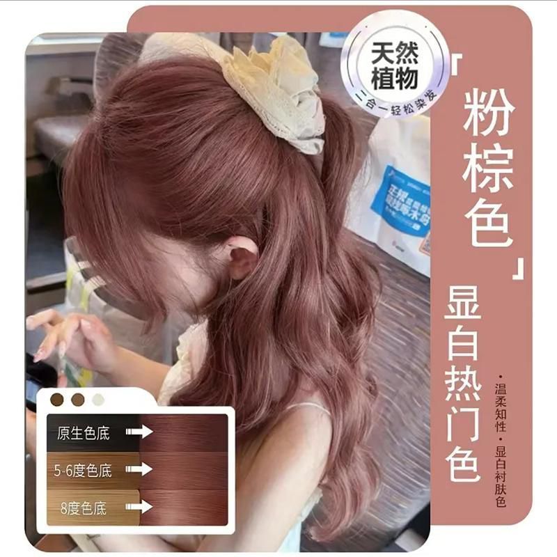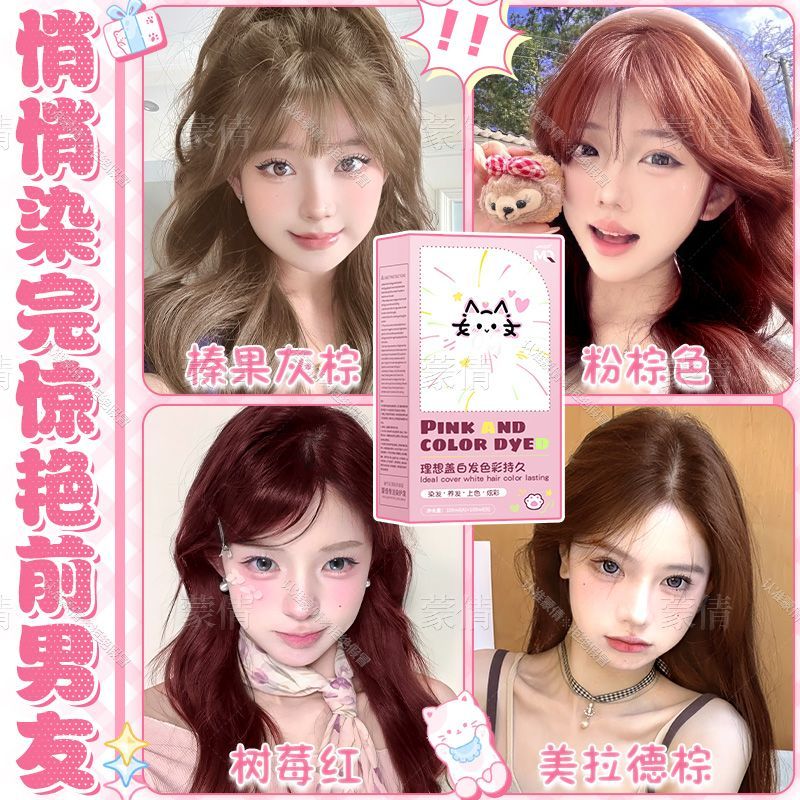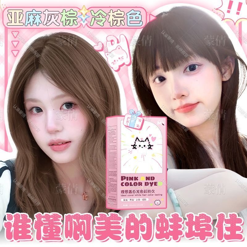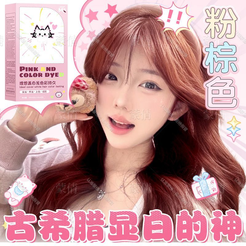 蒙倩染发膏粉棕色植物染发剂温和显白自己在家染头发新手易操作