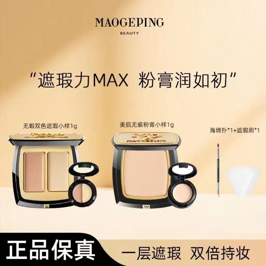 毛戈平双色遮瑕粉膏小样1g+清透美肌粉膏小样1g遮瑕粉底液膏