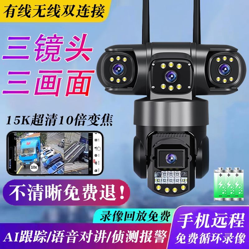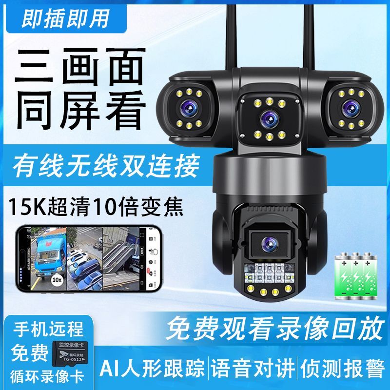v380pro超清三画面有线家用监控摄像头poe供电360度wifi变焦对讲