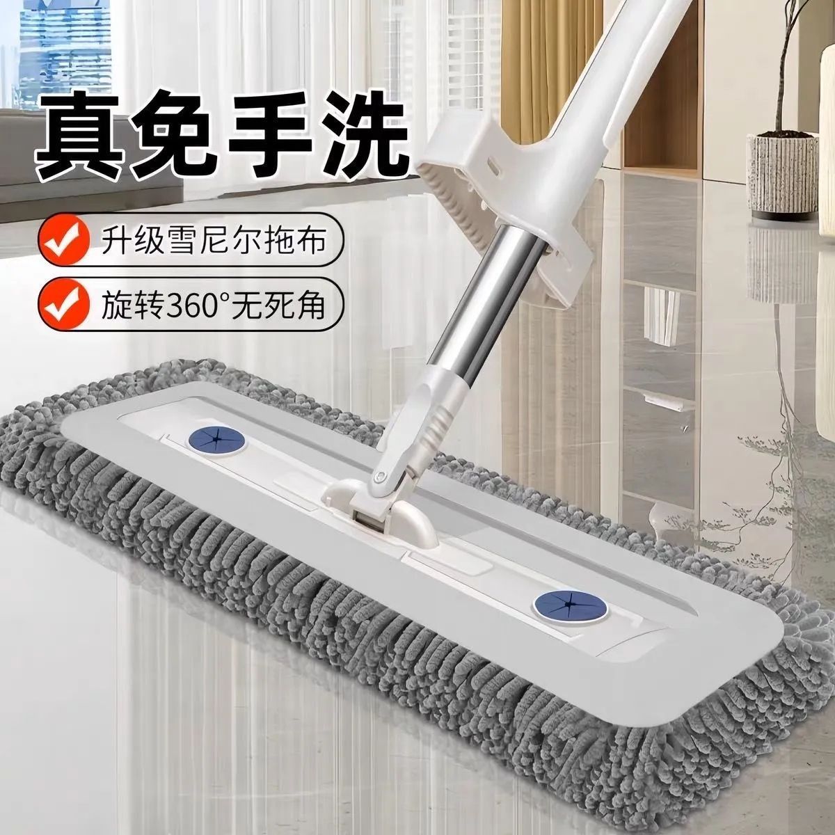 雪尼尔免手平板拖把新款懒人吸水神器湿两用拖布家用一拖拖地墩布