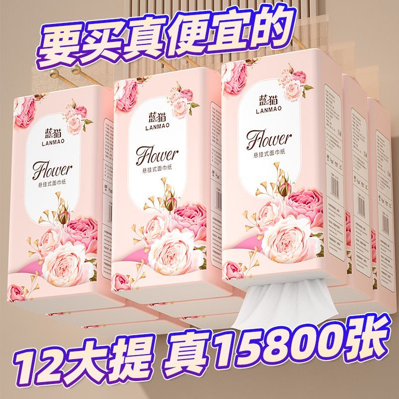 加量加厚悬挂式抽纸底部抽纸卫生纸餐巾纸气垫纸巾车用纸巾抽纸巾