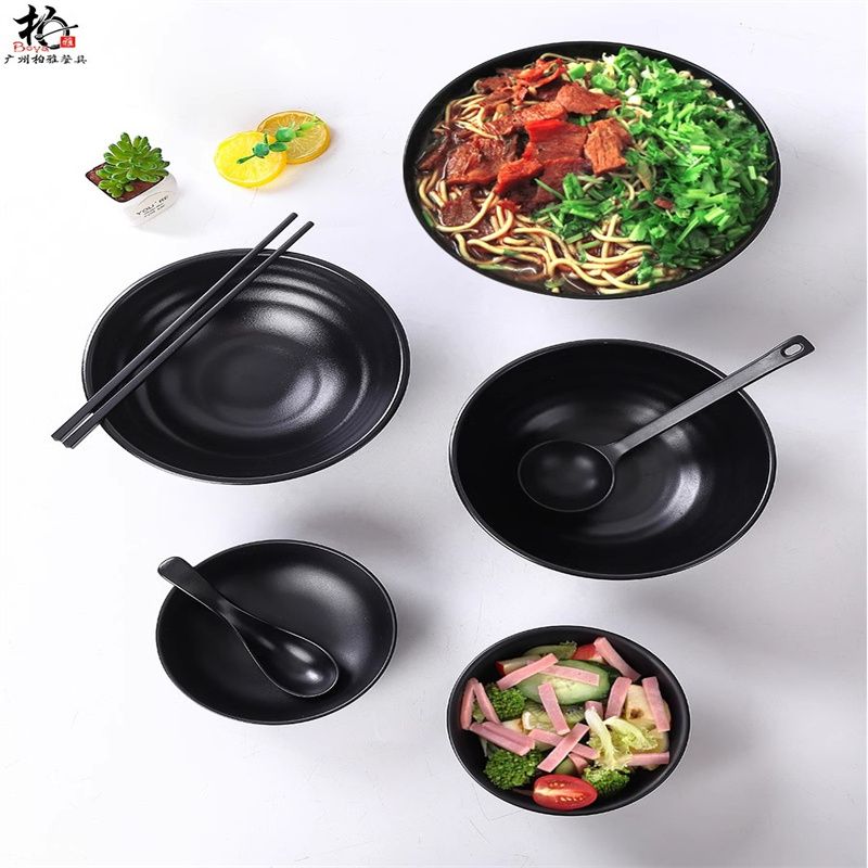 仿瓷日式餐具黑色牛肉拉面碗创意面馆专用塑料米线汤碗麻辣烫大碗