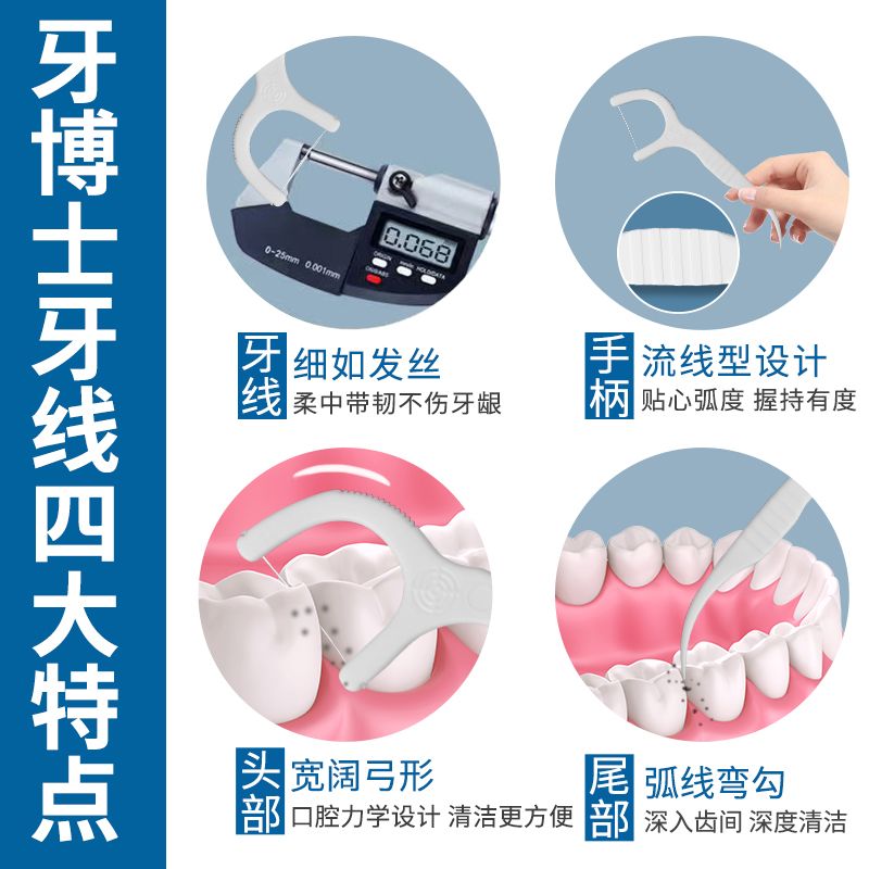 牙博士牙线棒袋装家庭高档细线易入牙缝高拉力不卡牙方便携带优惠