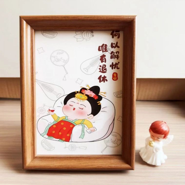 相框摆台高档轻奢ins风实木相框小众竖版同款圆边相框