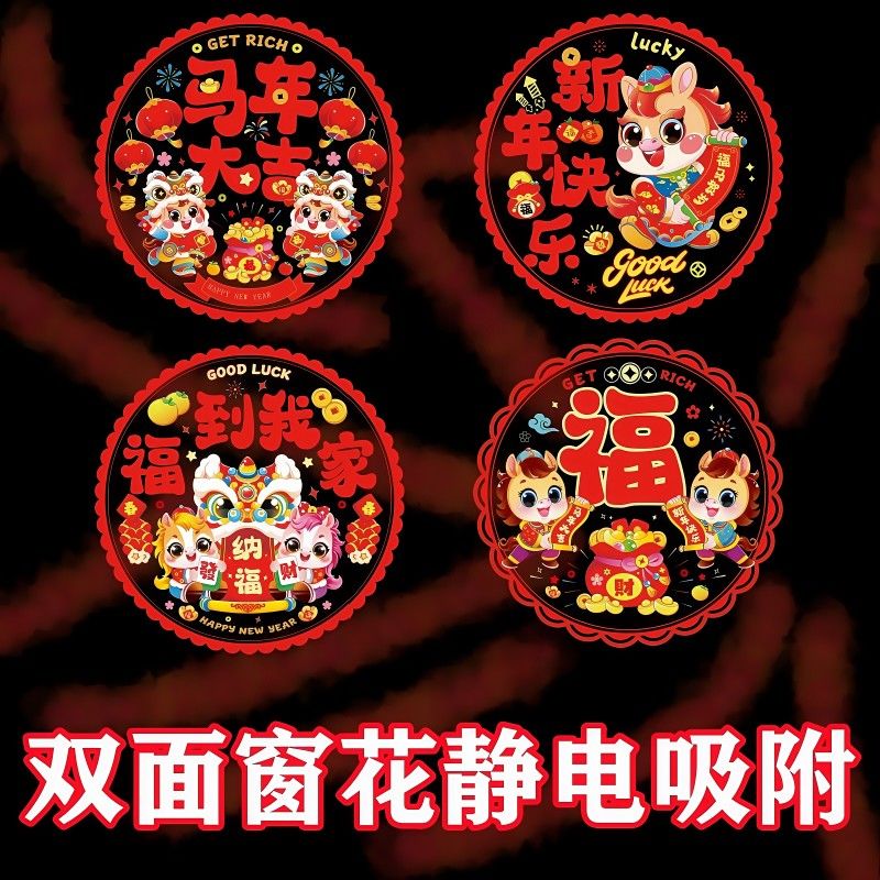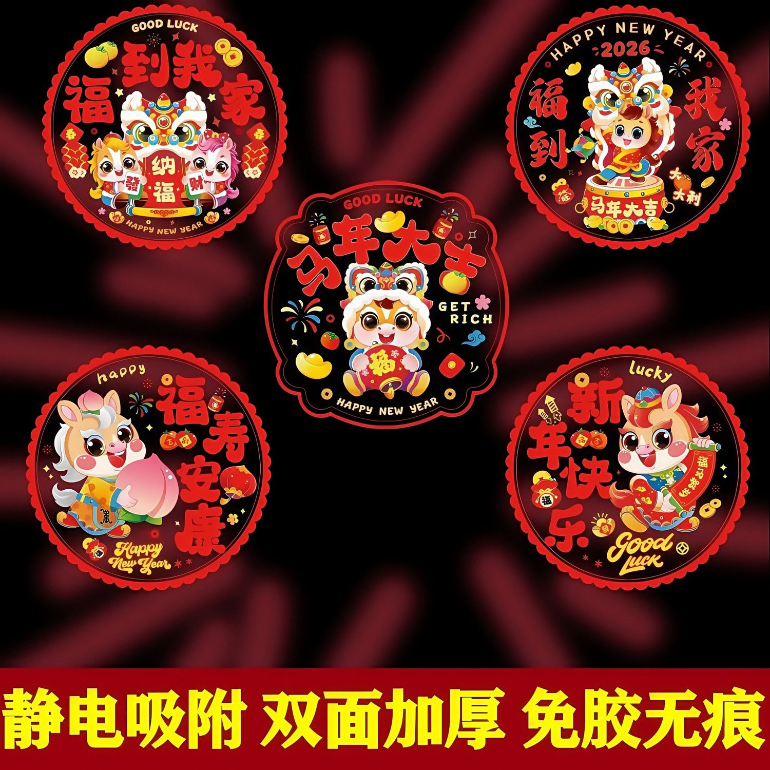 2026马年新年装饰窗贴玻璃贴纸过年中国风春节墙贴静电贴福字窗花