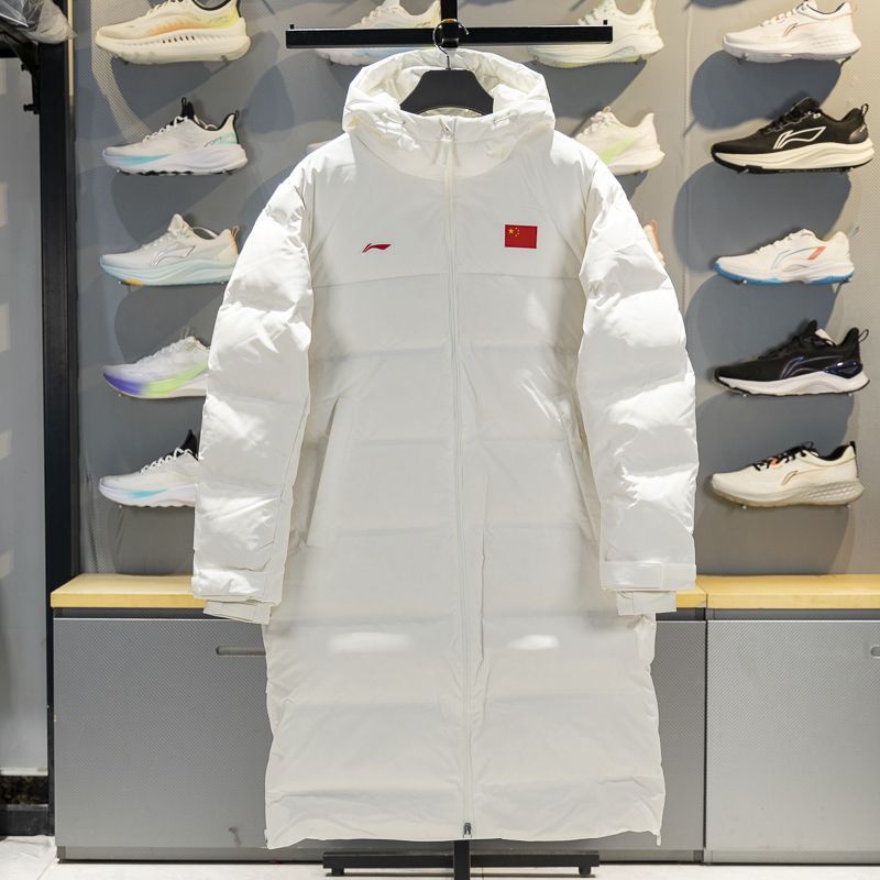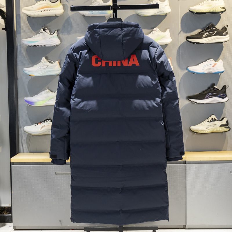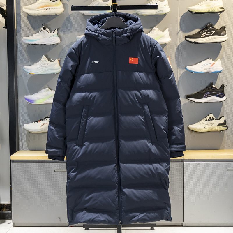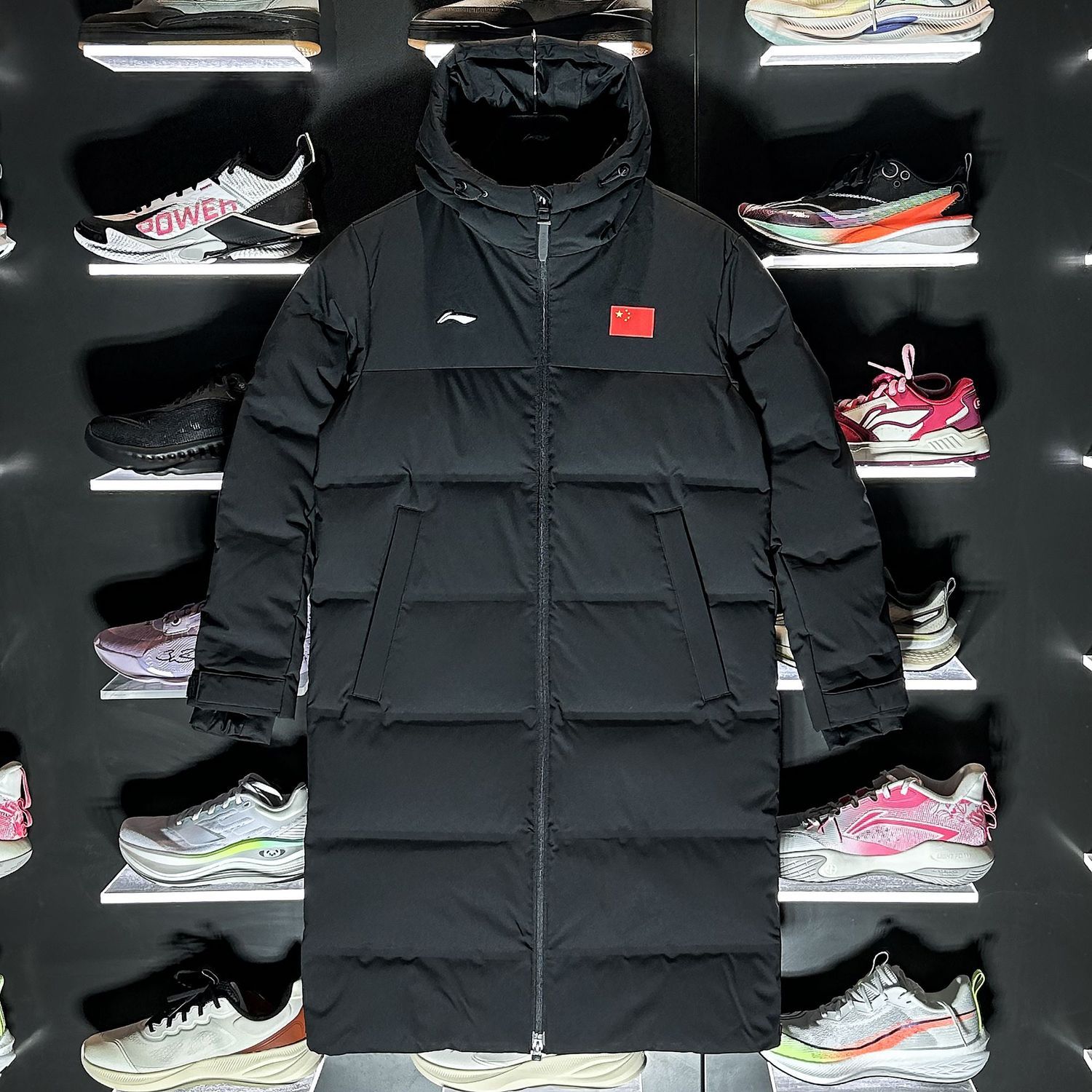 李宁长款羽绒服 2025冬新款男子荣耀保暖连帽鸭绒运动外套AYMV659