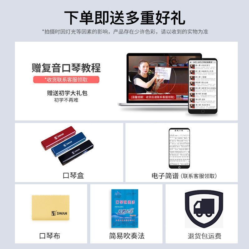 天鹅口琴初学者学生24孔28孔复音重音C调儿童成人入门自学乐器