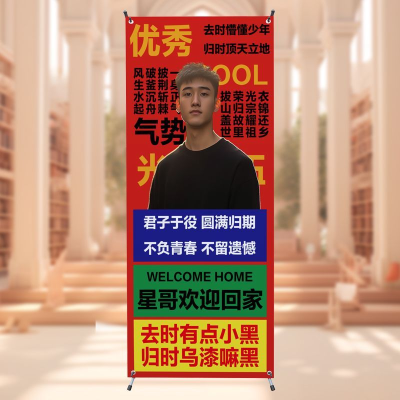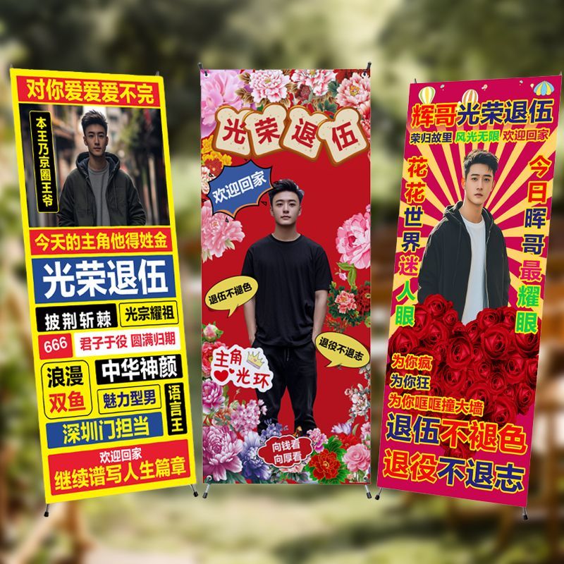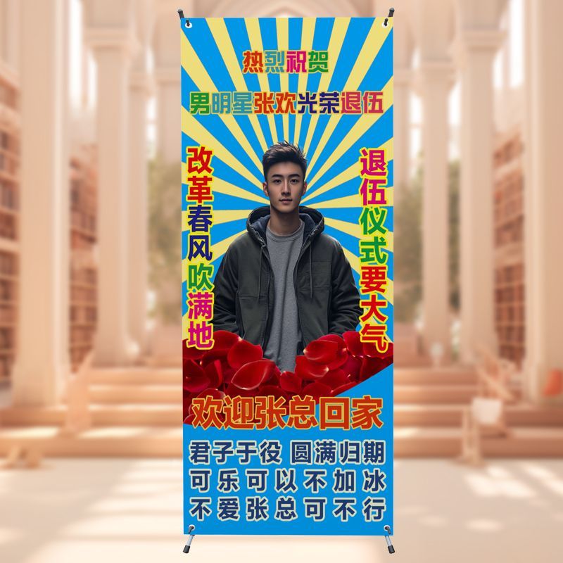 光荣退休欢送会海报布置装饰荣休快乐仪式氛围退伍场景战友聚会X