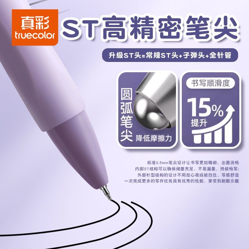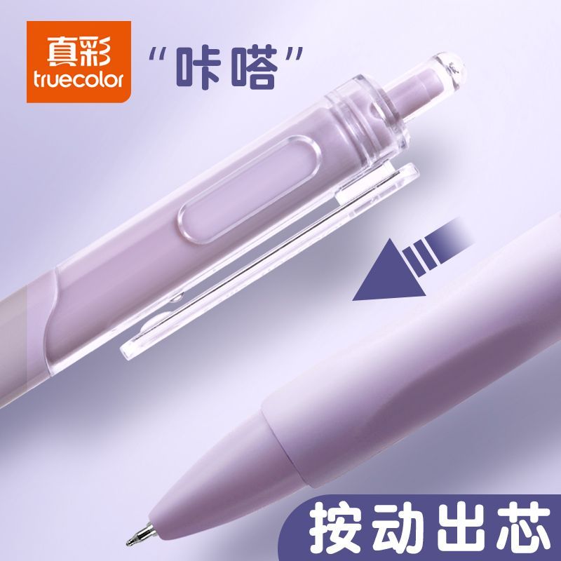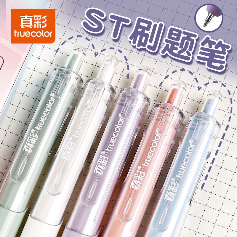 真彩按动式中性笔0.5黑色学生刷题笔ins按动笔高颜值速干顺滑耐用