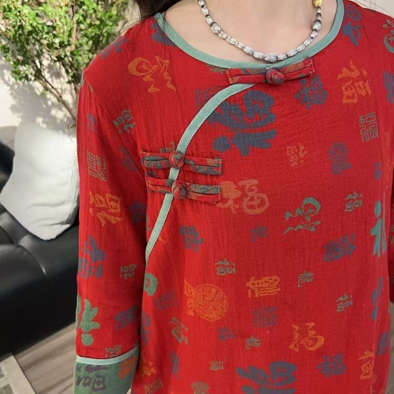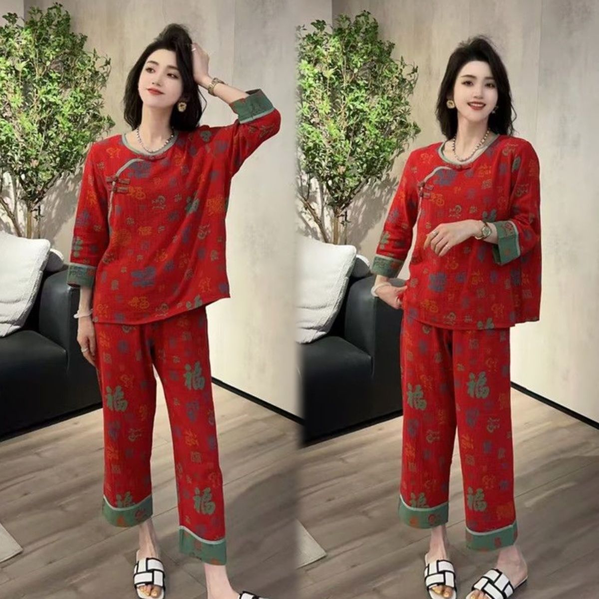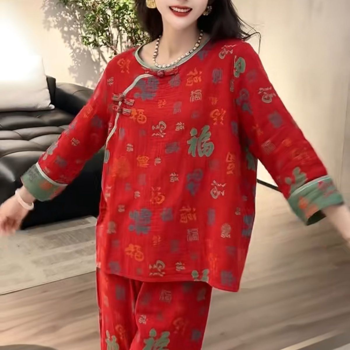 中式新款长袖长裤睡衣女本命年复古国风宽松休闲时尚家居服套装
