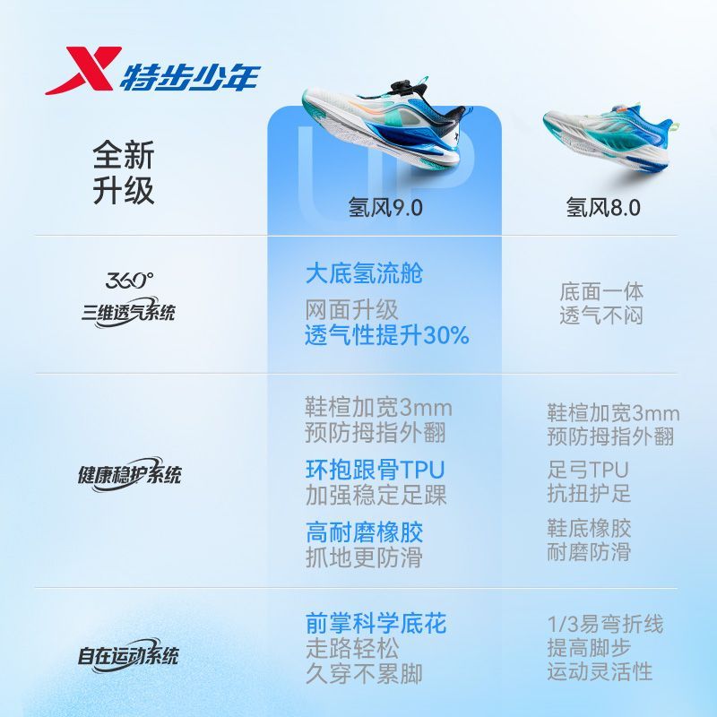 【氢风9.0护足跑鞋】特步儿童网面透气跑步鞋男童运动鞋女童鞋子