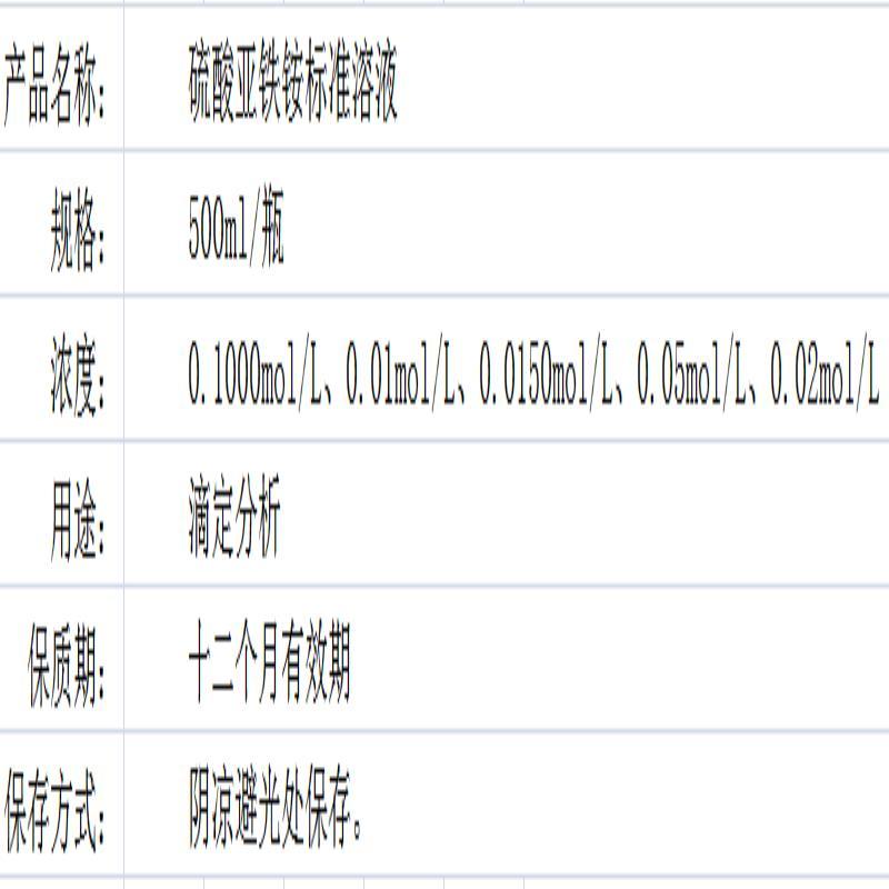 硫酸亚铁铵标准溶液滴定分析COD测定0.01-0.1-0.2mol/L