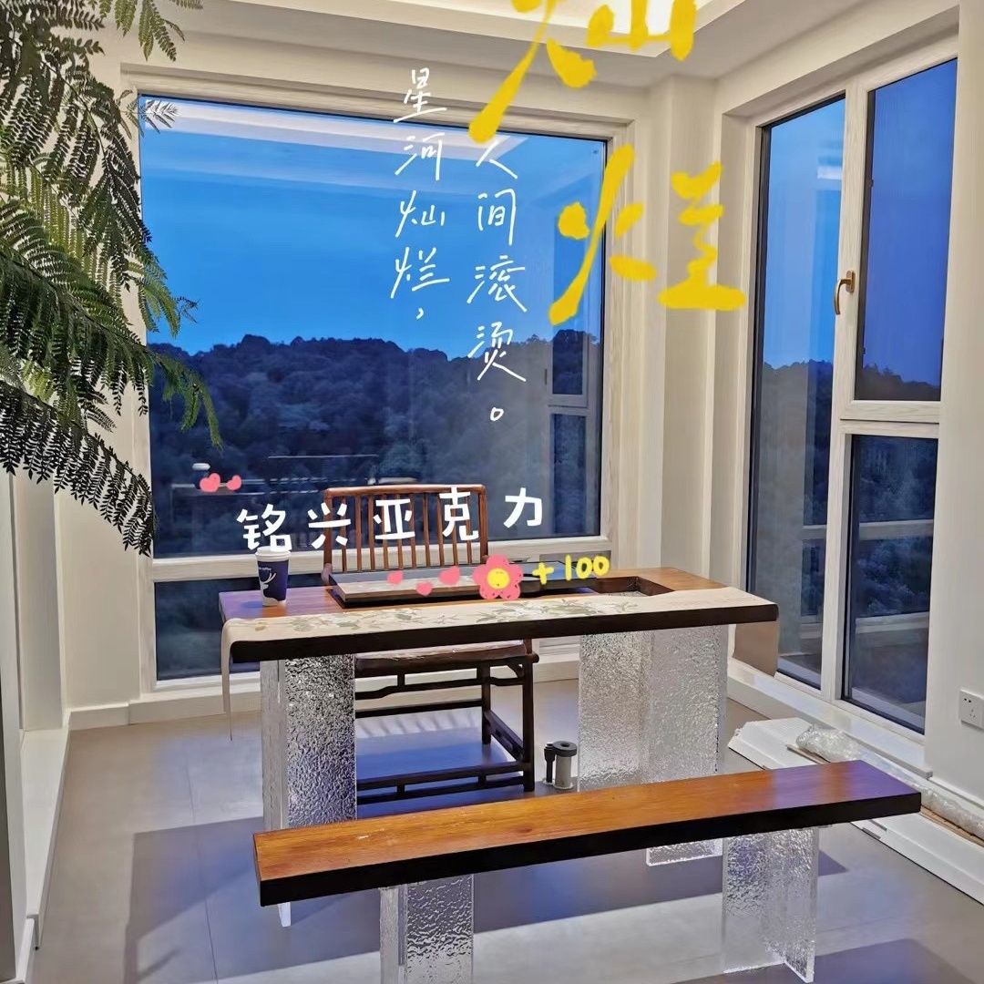 渐变色亚克力桌腿透明悬浮弧形餐桌茶几岛台岩板支架高档桌脚定制