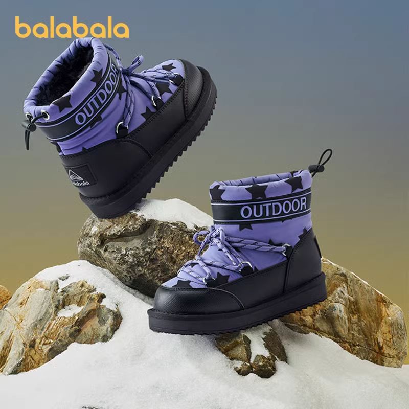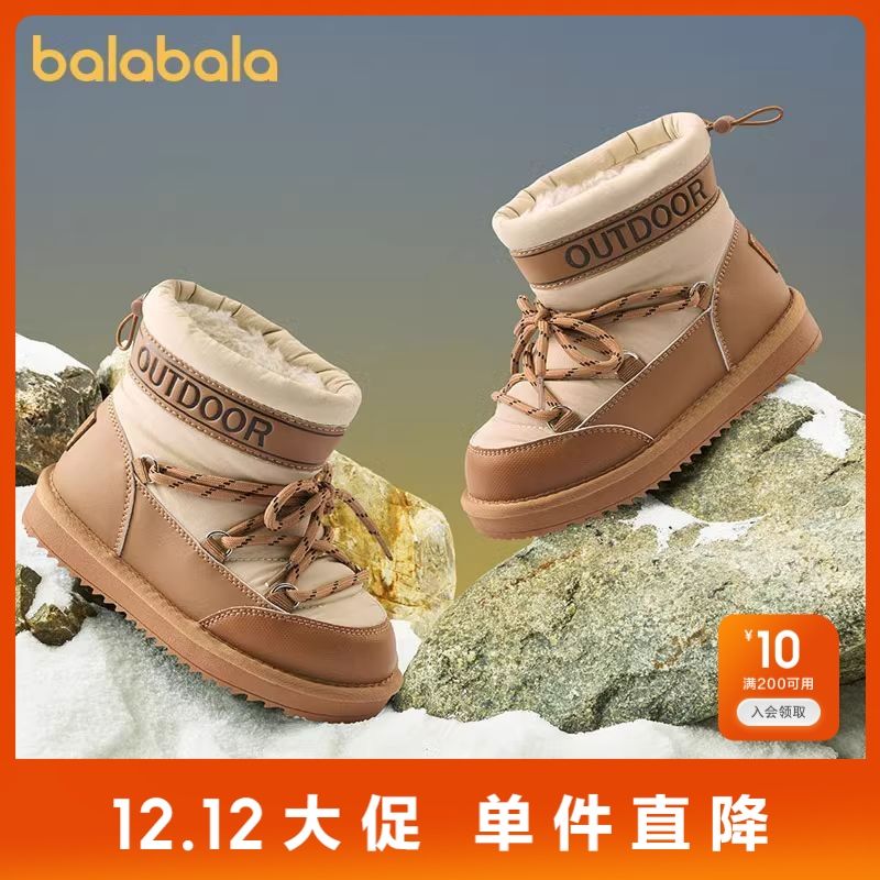 巴拉巴拉童鞋雪地靴男童女童加绒加厚儿童棉靴冬靴子户外