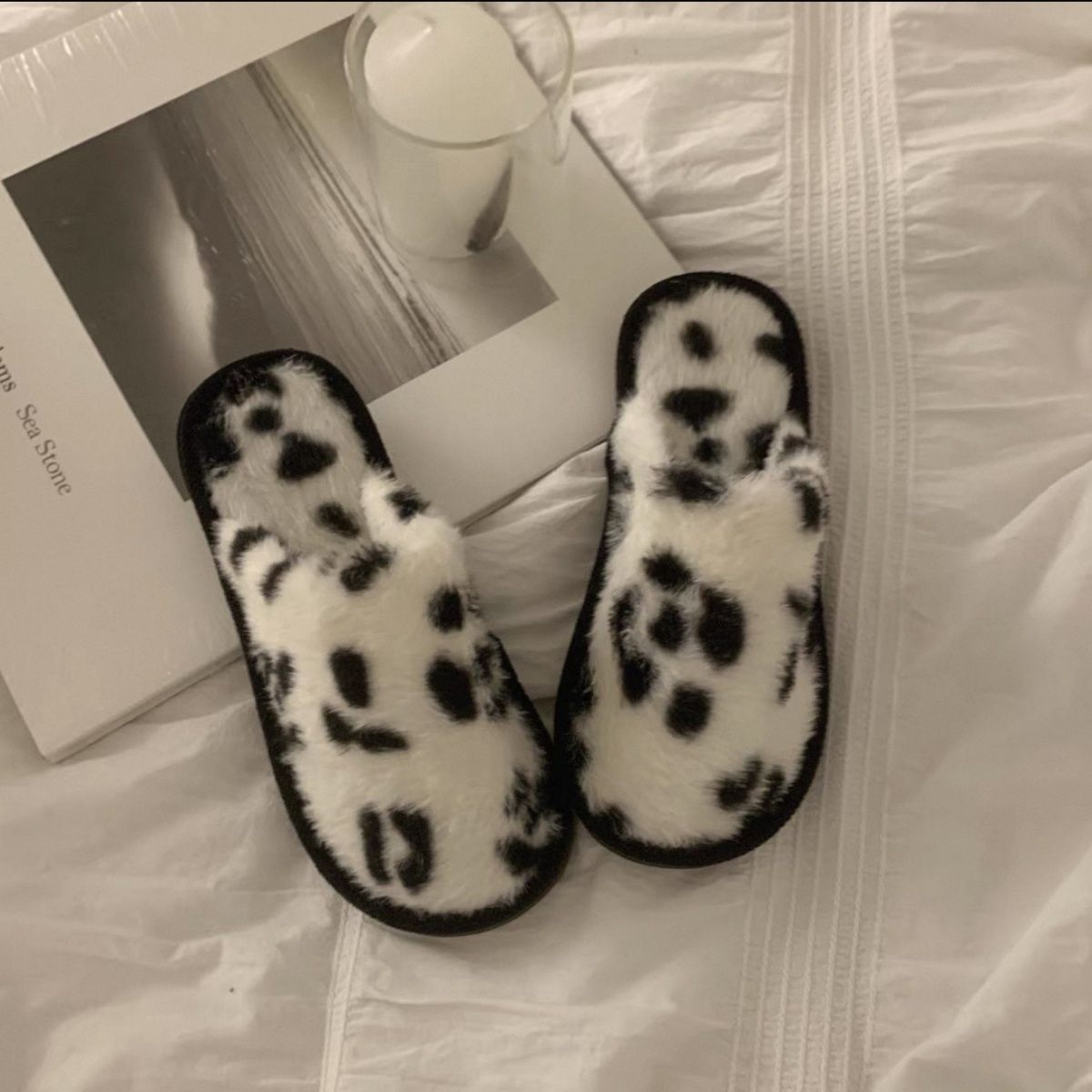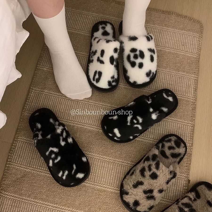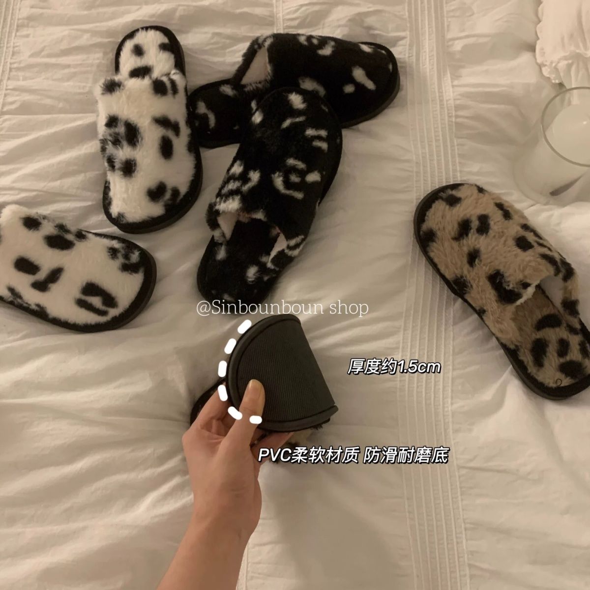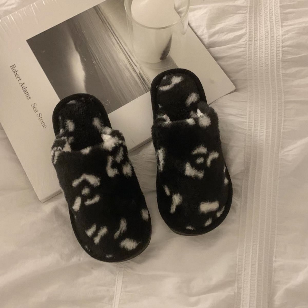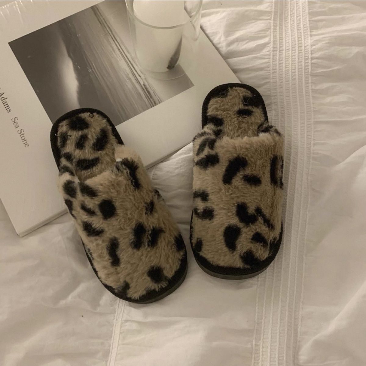 秋冬撞色豹纹棉鞋时髦拖鞋防滑保暖居家毛绒棉拖女【3天内发货】