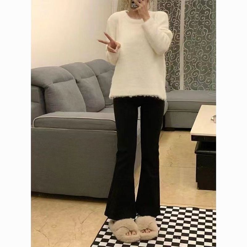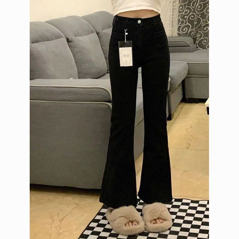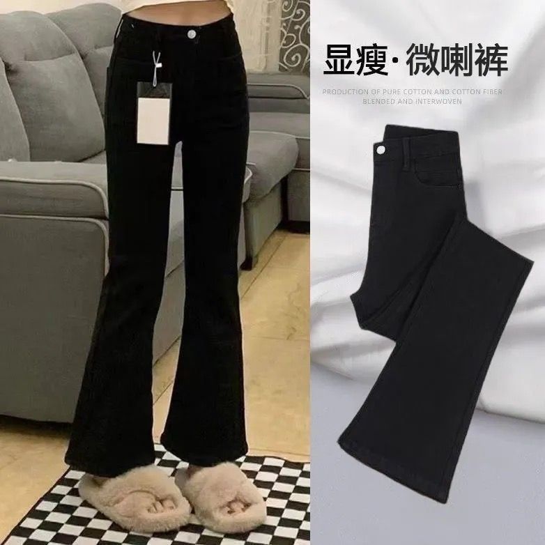 145九分小个子黑色百搭弹力牛仔裤女春秋新款显瘦修身微喇裤ins潮