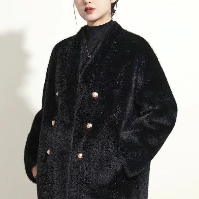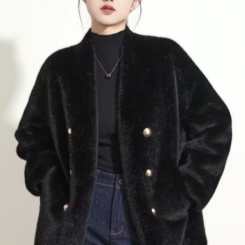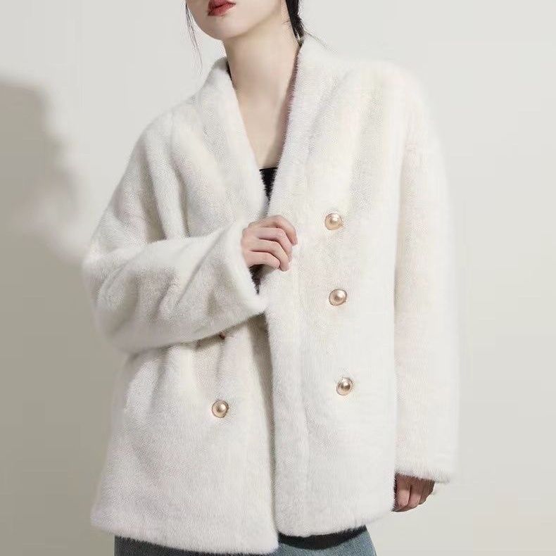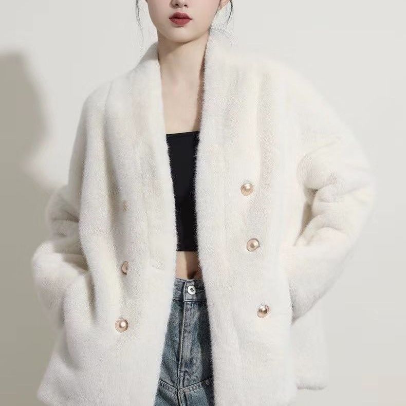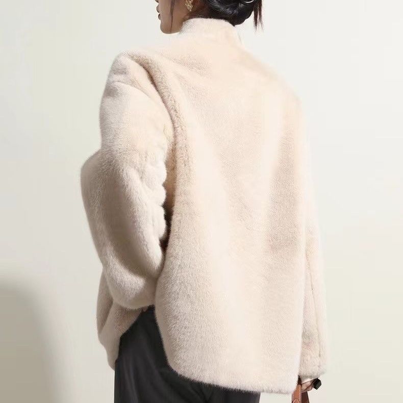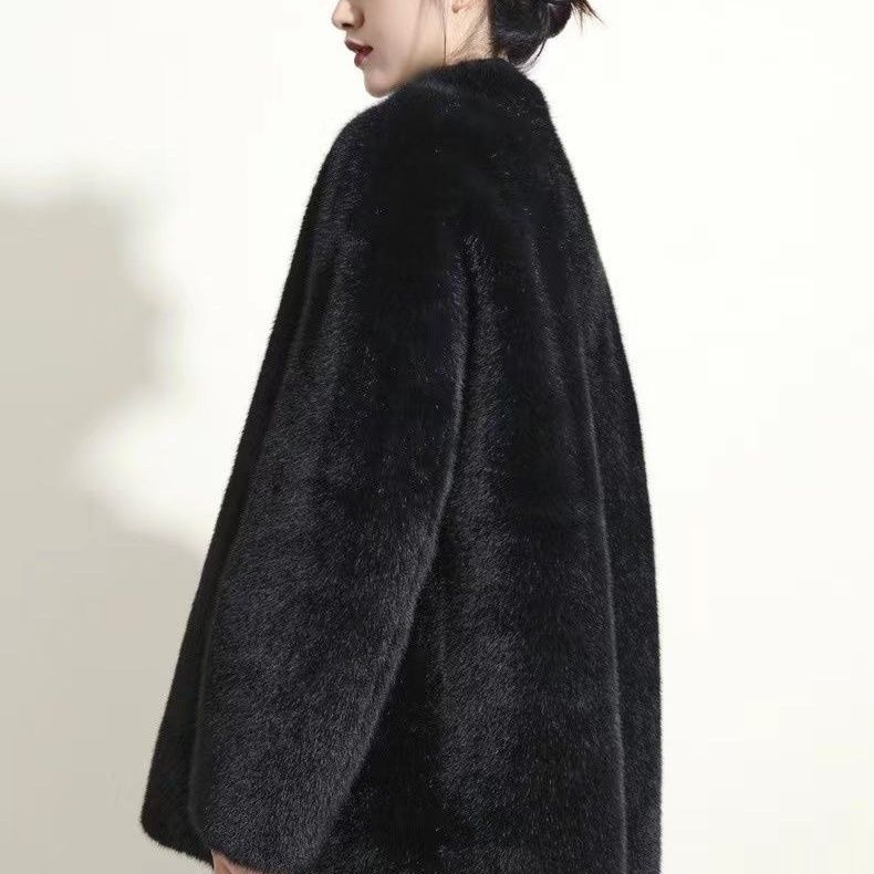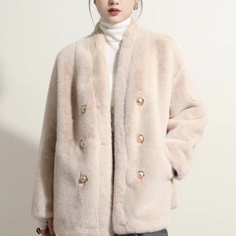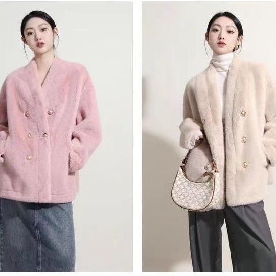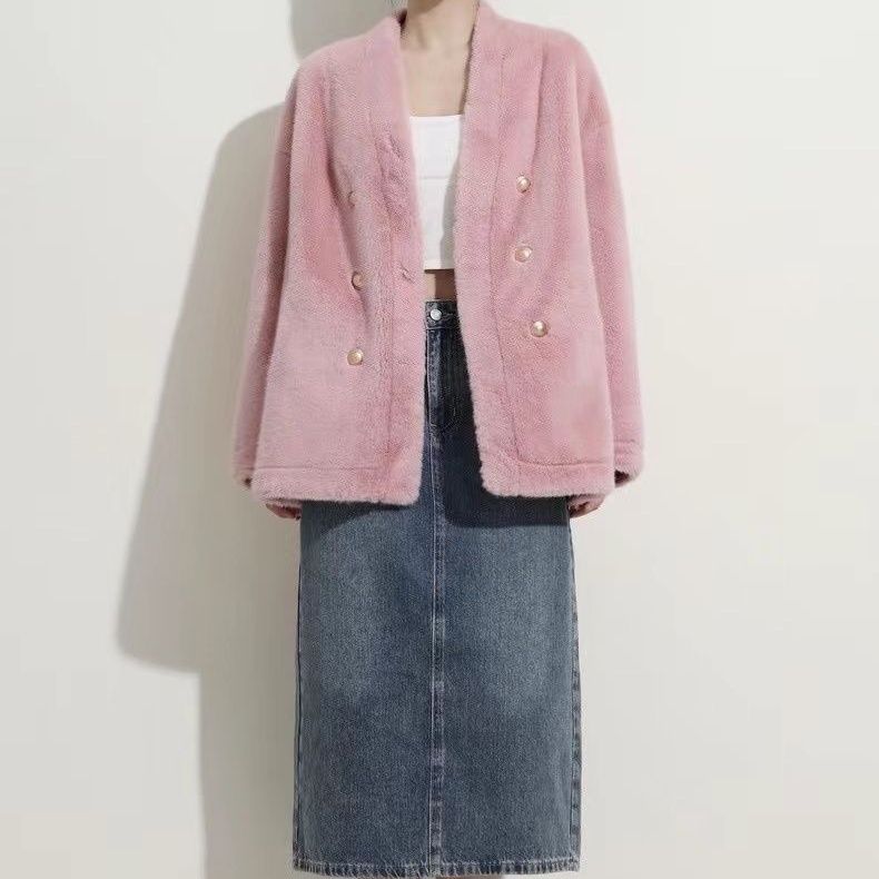 新款2024皮毛一体冬季宽松大衣短款皮草水貂外套加厚废土风上衣
