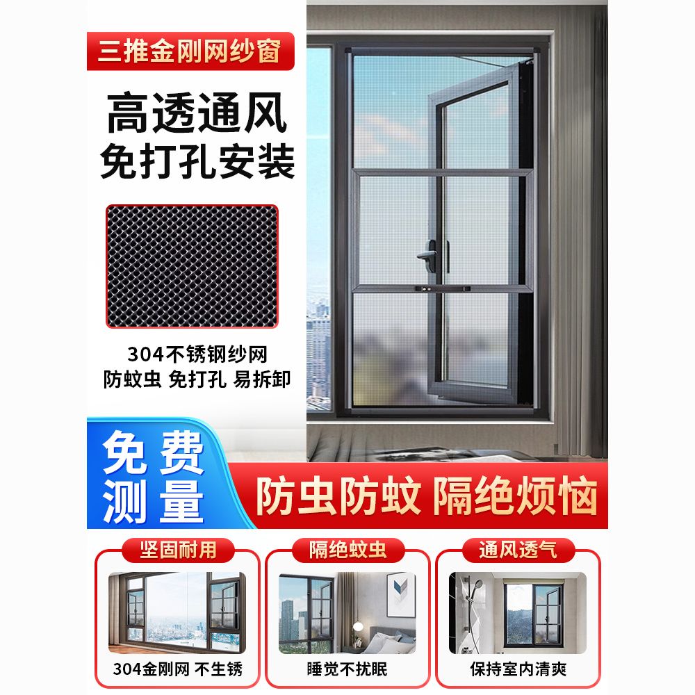 家用免安装金刚高透网不锈钢防盗纱窗不锈钢纱网定制防蚊窗纱