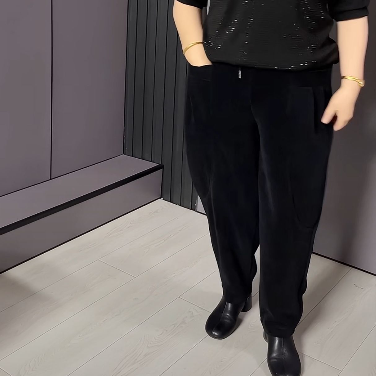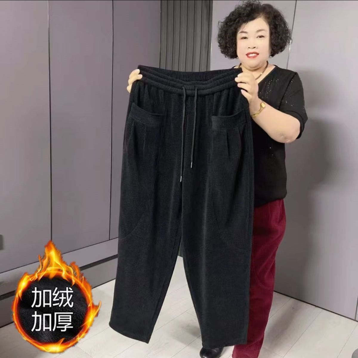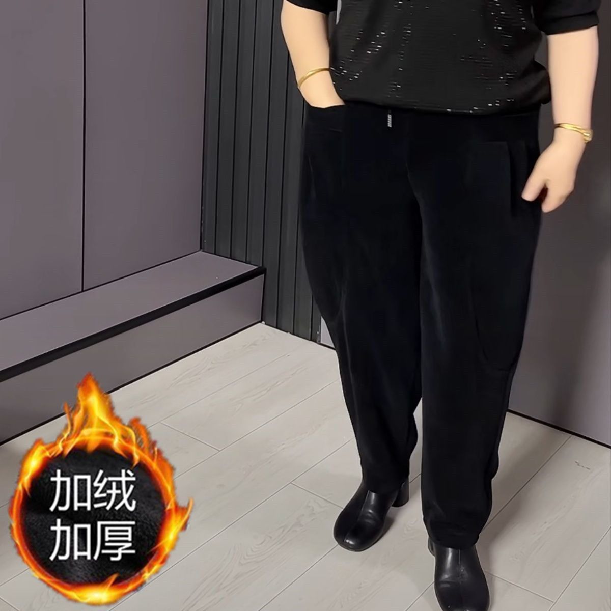 百搭300斤中老年2025新款冬季加绒高腰宽松哈伦百搭时尚休闲裤