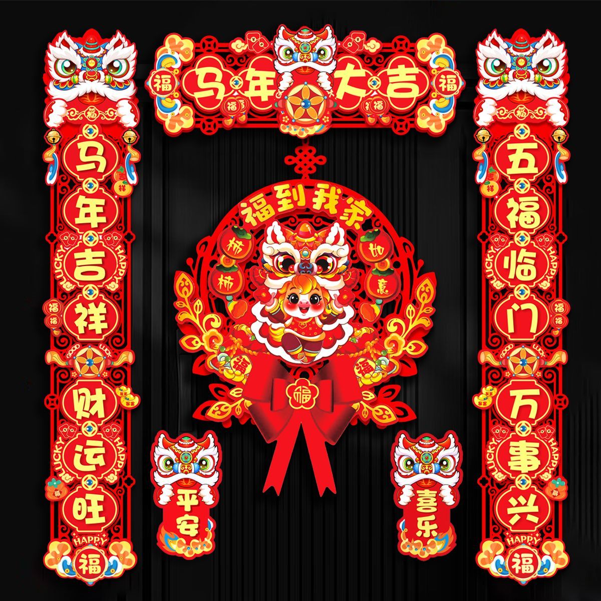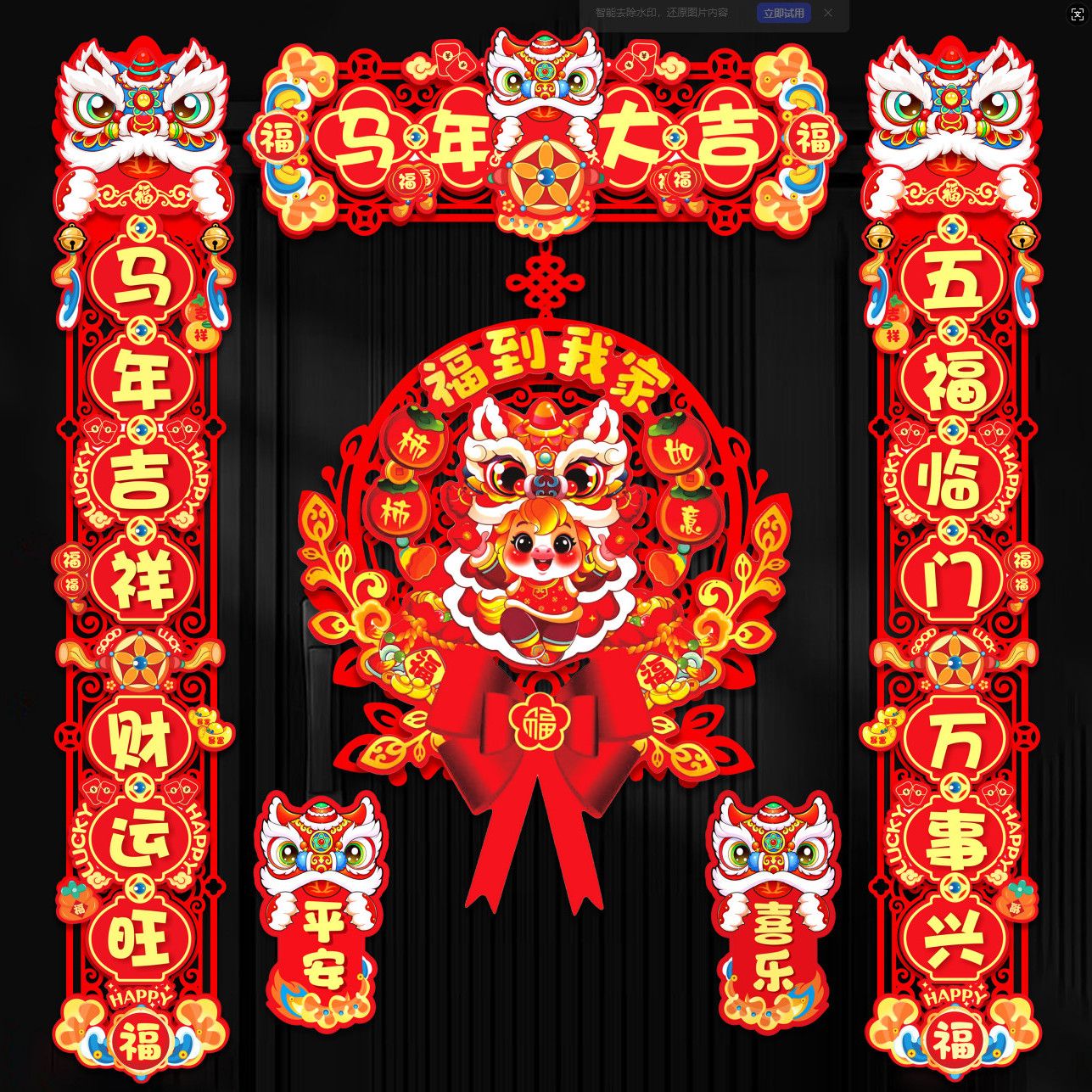 2026新款过年春节磁吸对联马年春联植绒家用装饰新春大门福字门贴