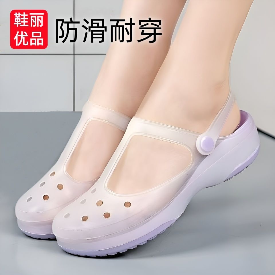 洞洞鞋女款防滑厚底沙滩鞋女夏外穿新款包头凉鞋女士凉拖鞋果冻鞋
