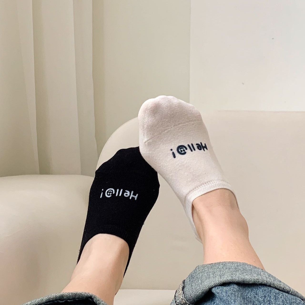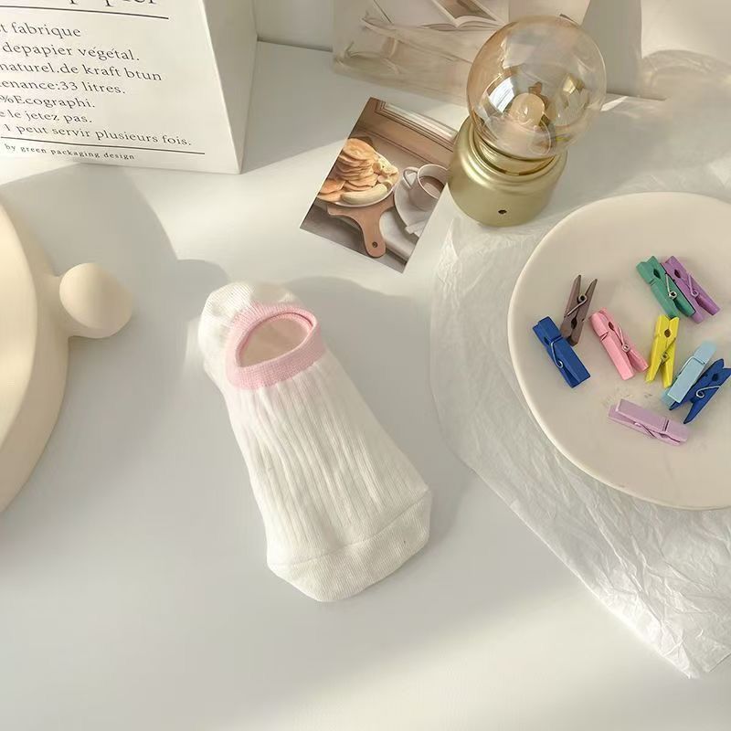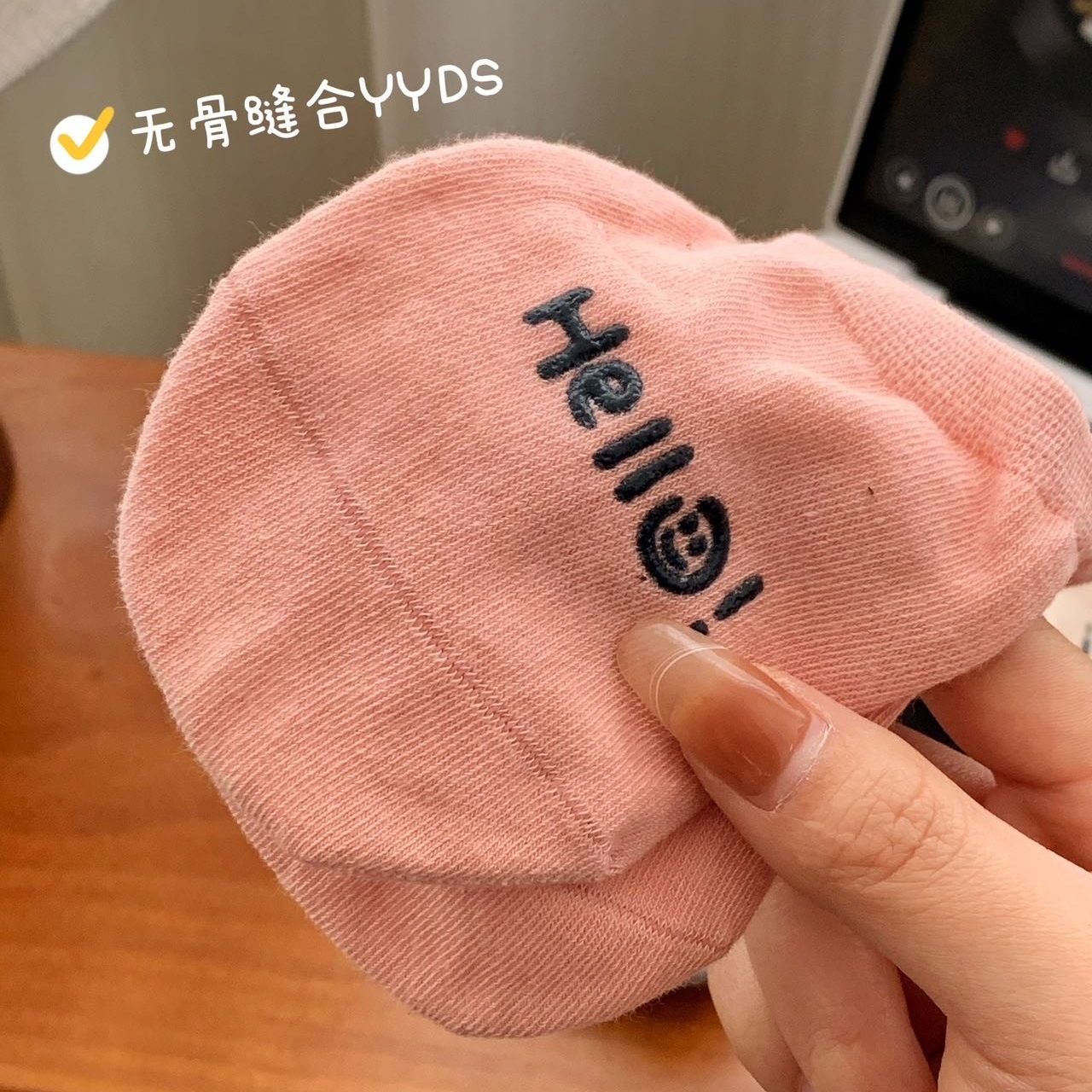 【20双装】可爱韩版夏日hello刺绣奶油跟脚透气学生隐形短袜【3天内发货】