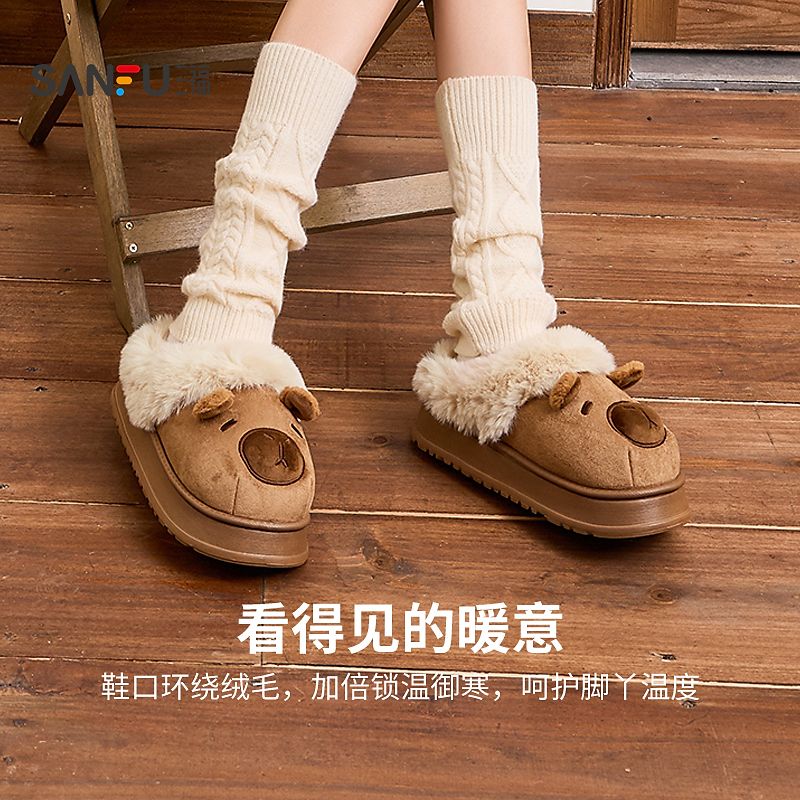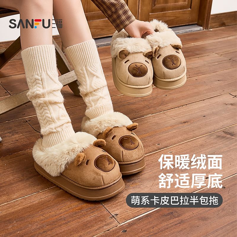 三福卡皮巴拉外穿半包拖鞋可爱趣味冬季日用家居棉鞋拖鞋845714
