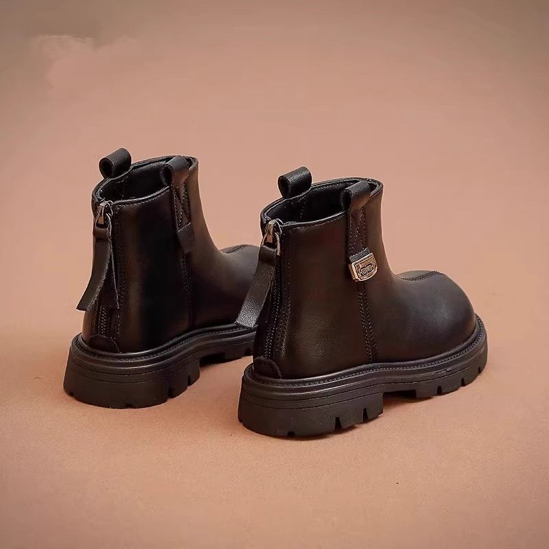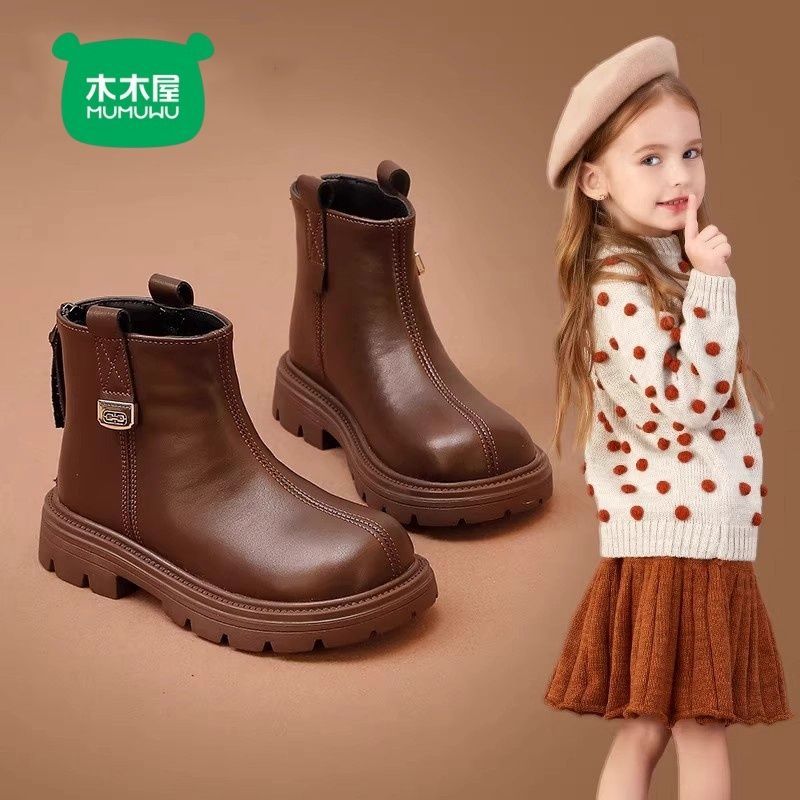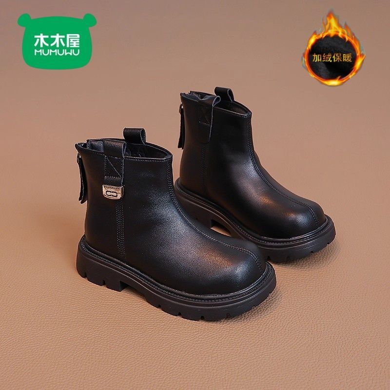 木木屋女童2025新款儿童靴子秋冬加绒马丁靴时尚公主宝宝洋气皮靴