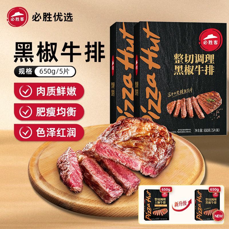 必胜客牛排必胜优选原肉整切黑椒冷冻牛排整切牛扒牛肉650g/盒