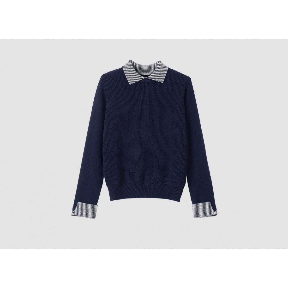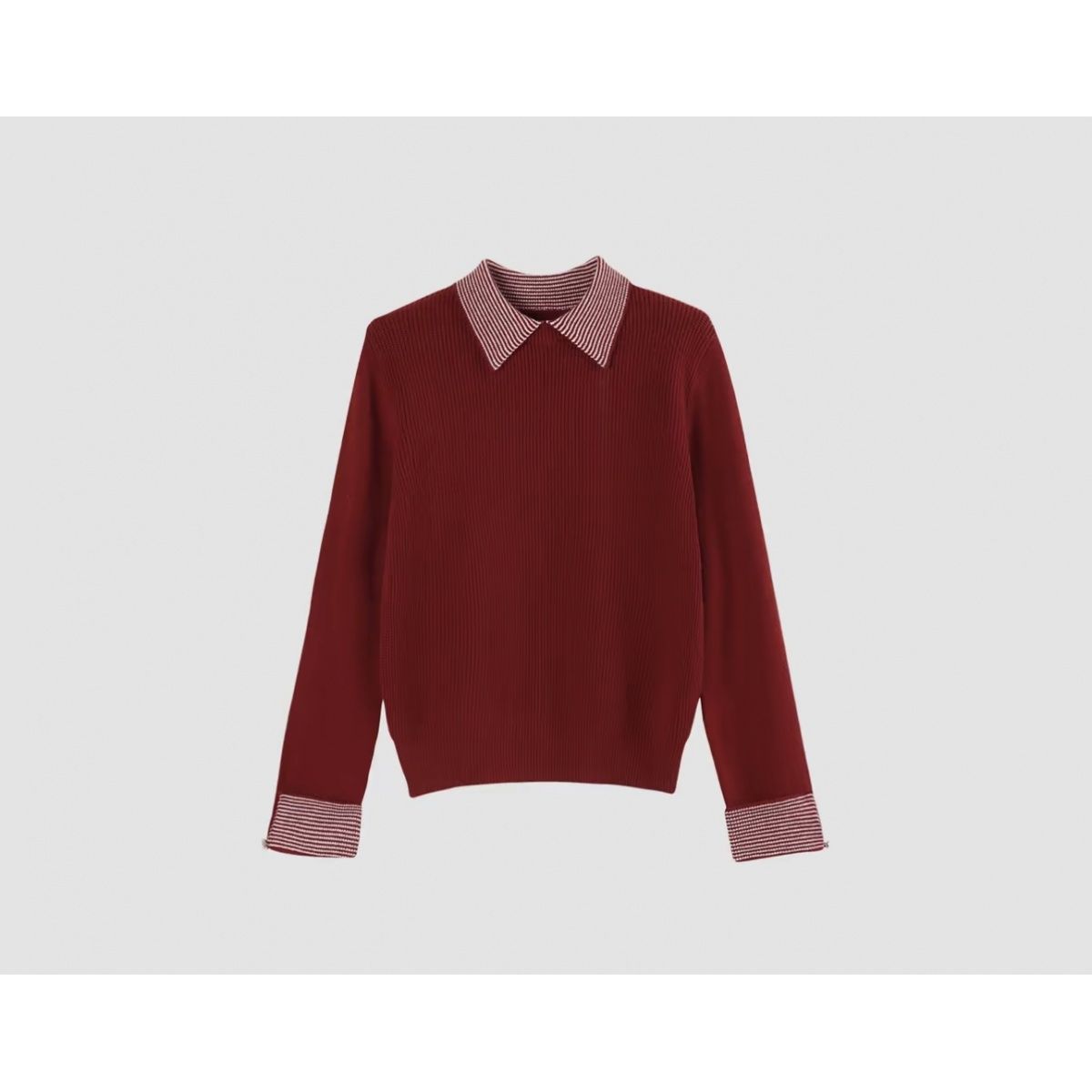 新款长袖针织衫条纹拼接翻领2025秋冬女内搭打底毛衣气质减龄上衣