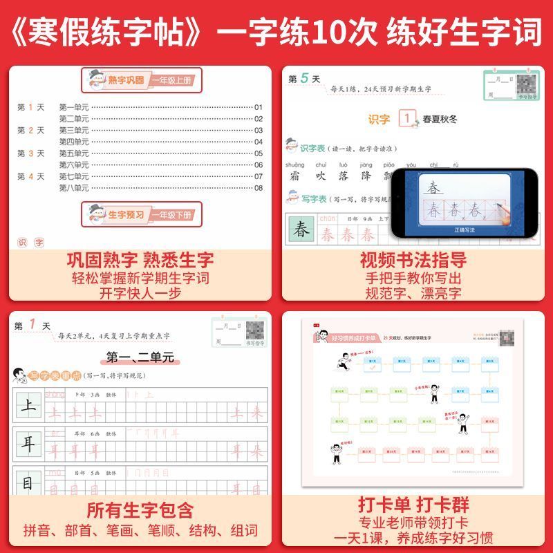 一本【寒假专项训练】寒假阅读口算练字帖21天打卡陪伴配视频讲解