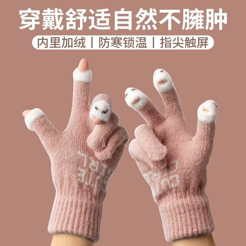 可伸缩收纳多孔有线带线插线板插板圆盘学生宿舍保暖手套女冬季【7天内发货】