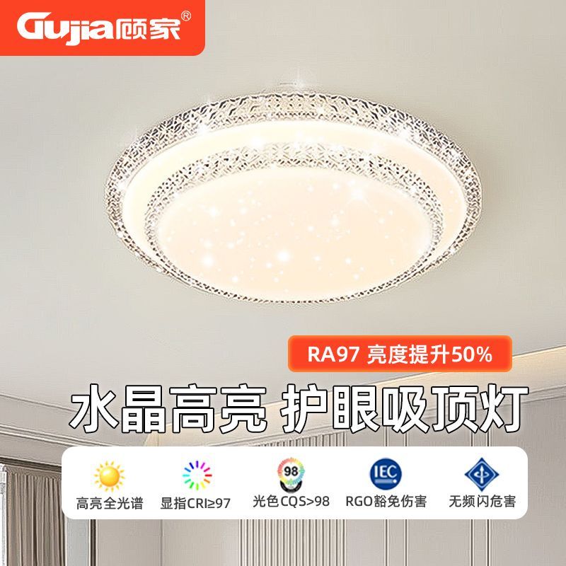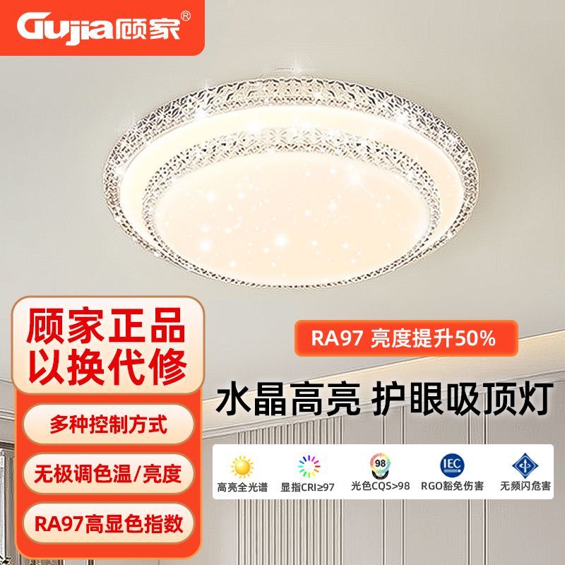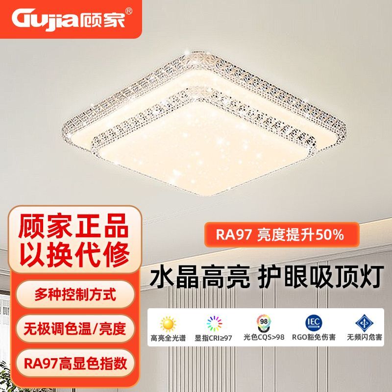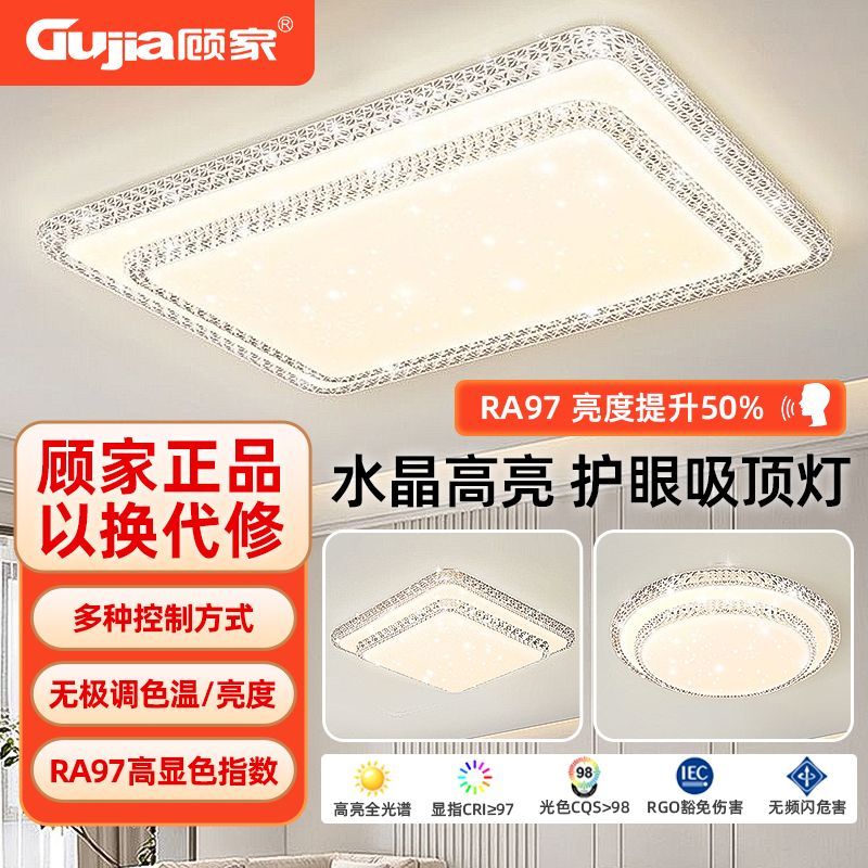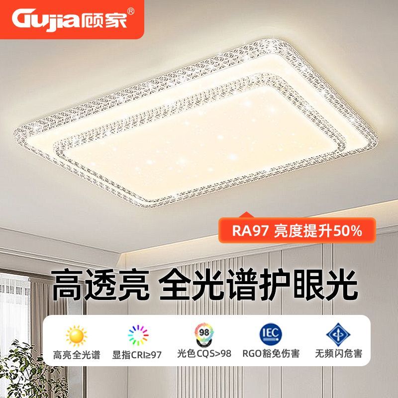 顾家LED简约现代长方形吸顶灯客厅卧室高亮护眼套餐仿水晶灯灯具