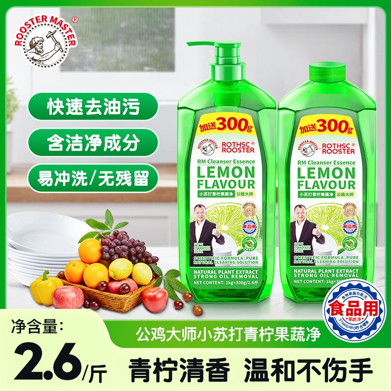 英国公鸡大师家庭装洗洁精家用食品厨房洗碗不伤冷水果蔬无残留