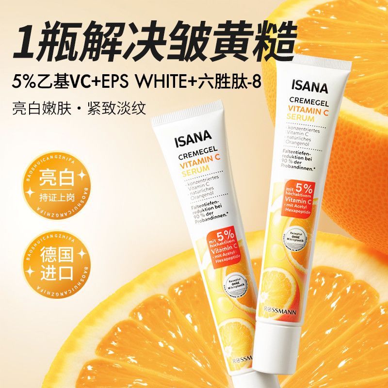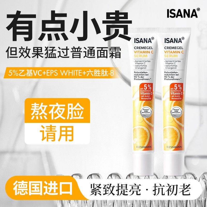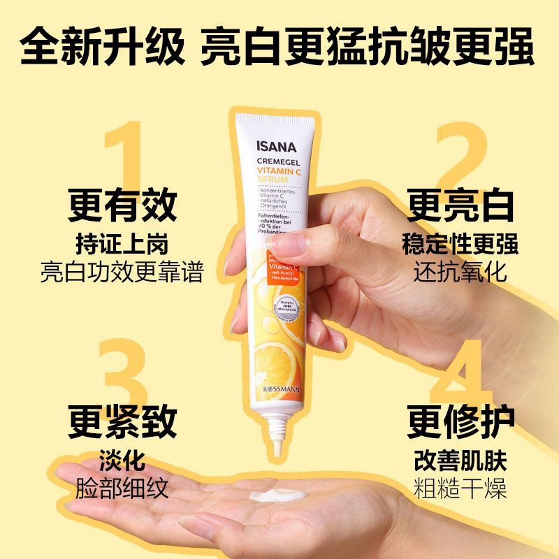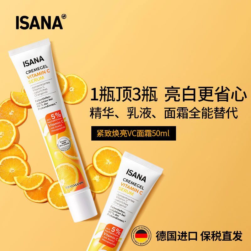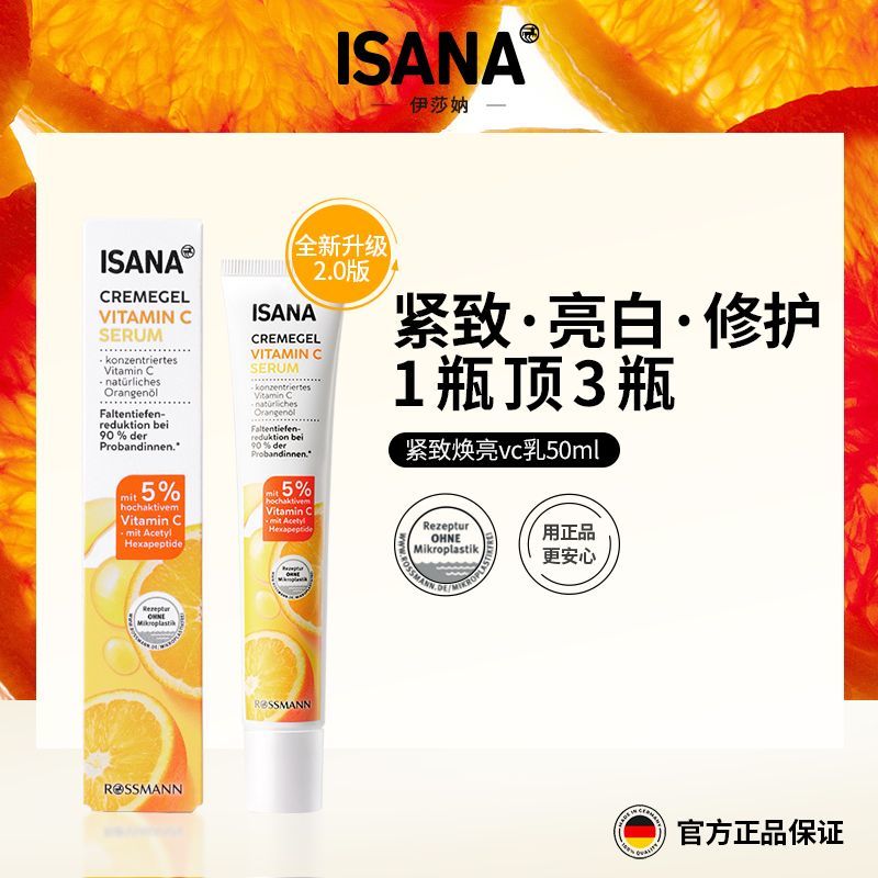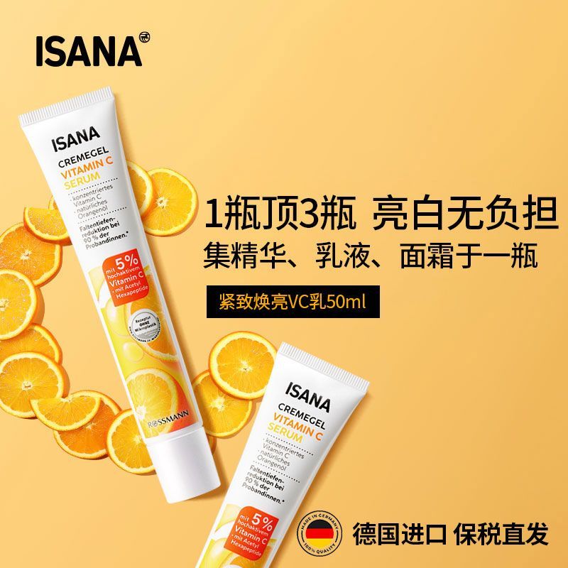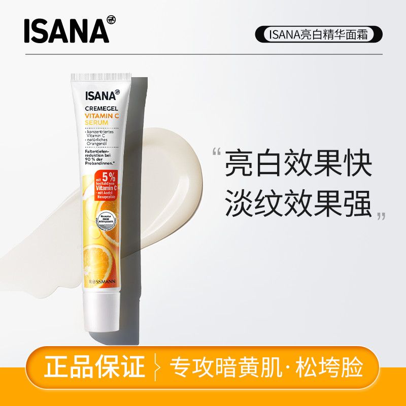 ISANA德国进口亮白嫩肤vc精华乳液面霜紧致熬夜脸改善暗沉粗糙